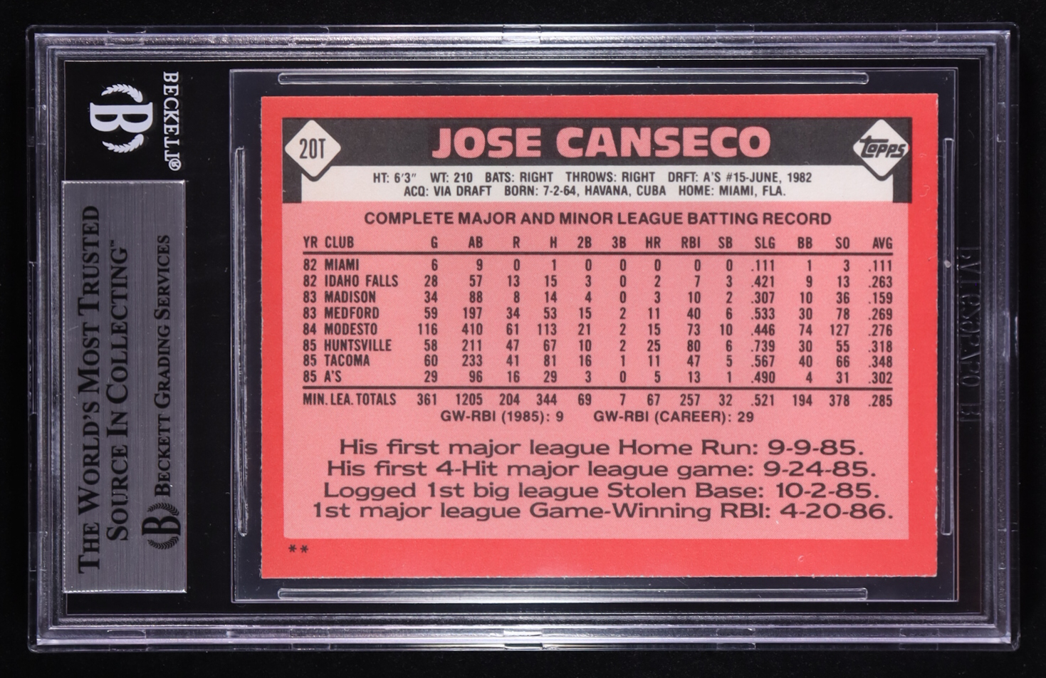Jose Canseco Signed 1986 Topps Traded XRC #20T (BGS | Autograph Graded Authetnic)