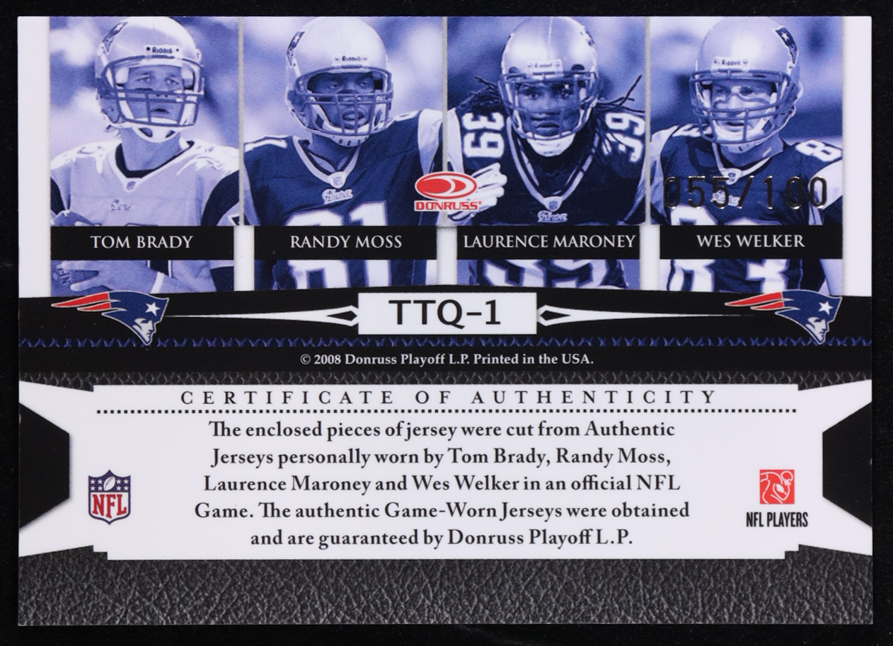 Tom Brady / Randy Moss / Laurence Maroney / Wes Welker 2008 Leaf Limited Team Threads Quads #1 #055/100
