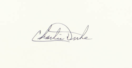 Hardcover book has been hand-signed on the inside cover page by author Charlie Duke.