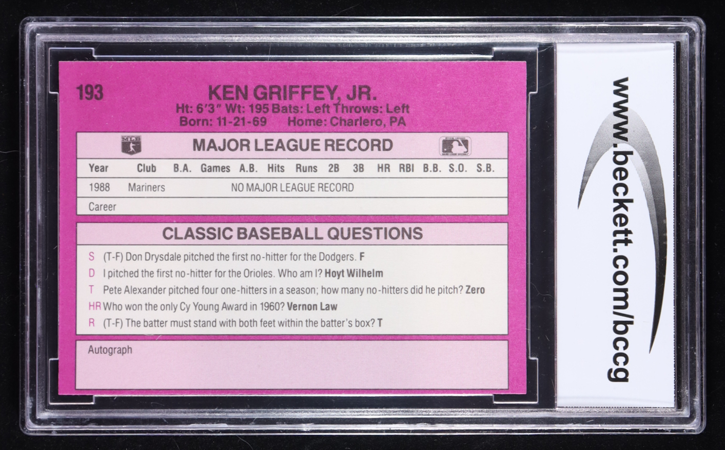 Ken Griffey Jr. 1989 Classic Travel Purple #193 RC (BCCG 9)