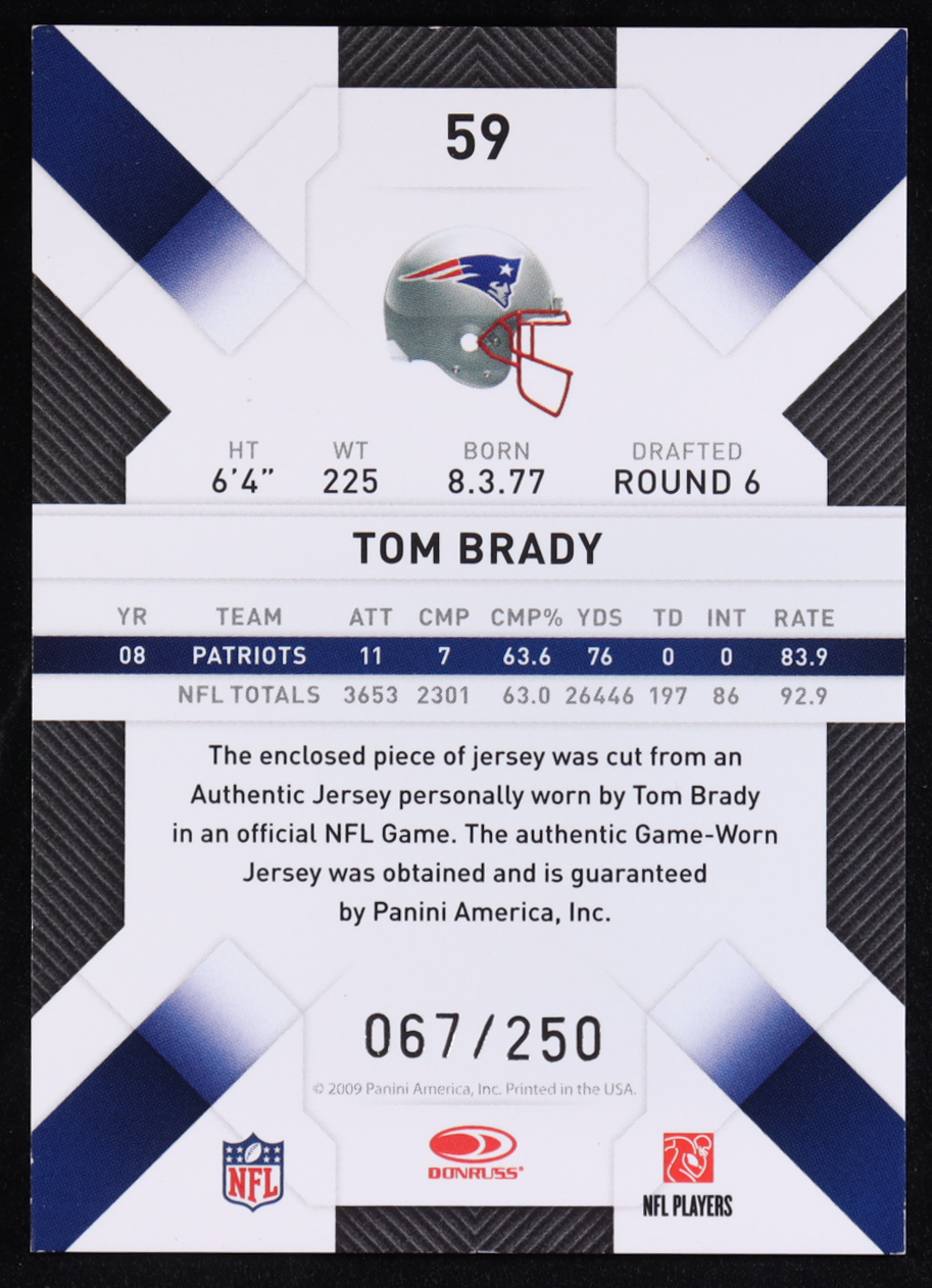 Tom Brady 2009 Donruss Threads Jerseys #59 #067/250