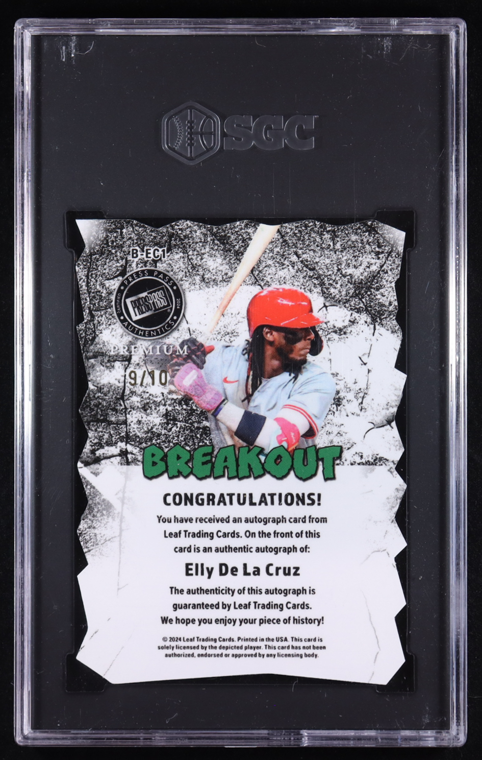 Elly De La Cruz 2024 Press Pass Premium Breakout Autographs Crystals Silver #BEC1 #9/10 (SGC 10 | Autograph Grade 10)