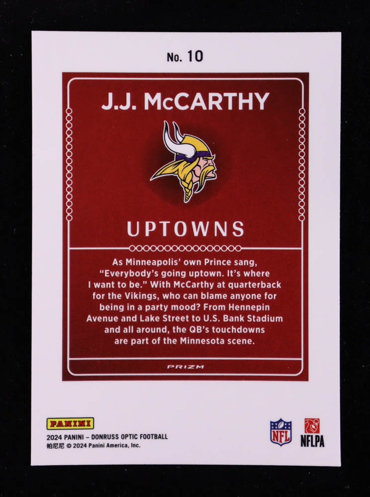 JJ McCarthy 2024 Donruss Optic Uptowns #10 RC