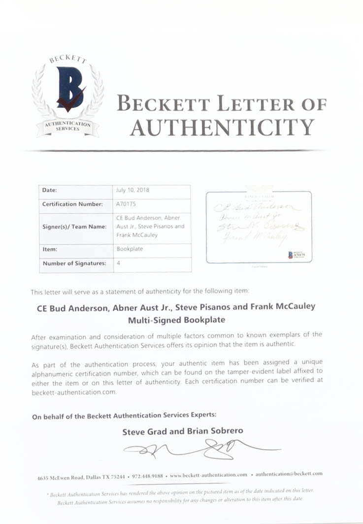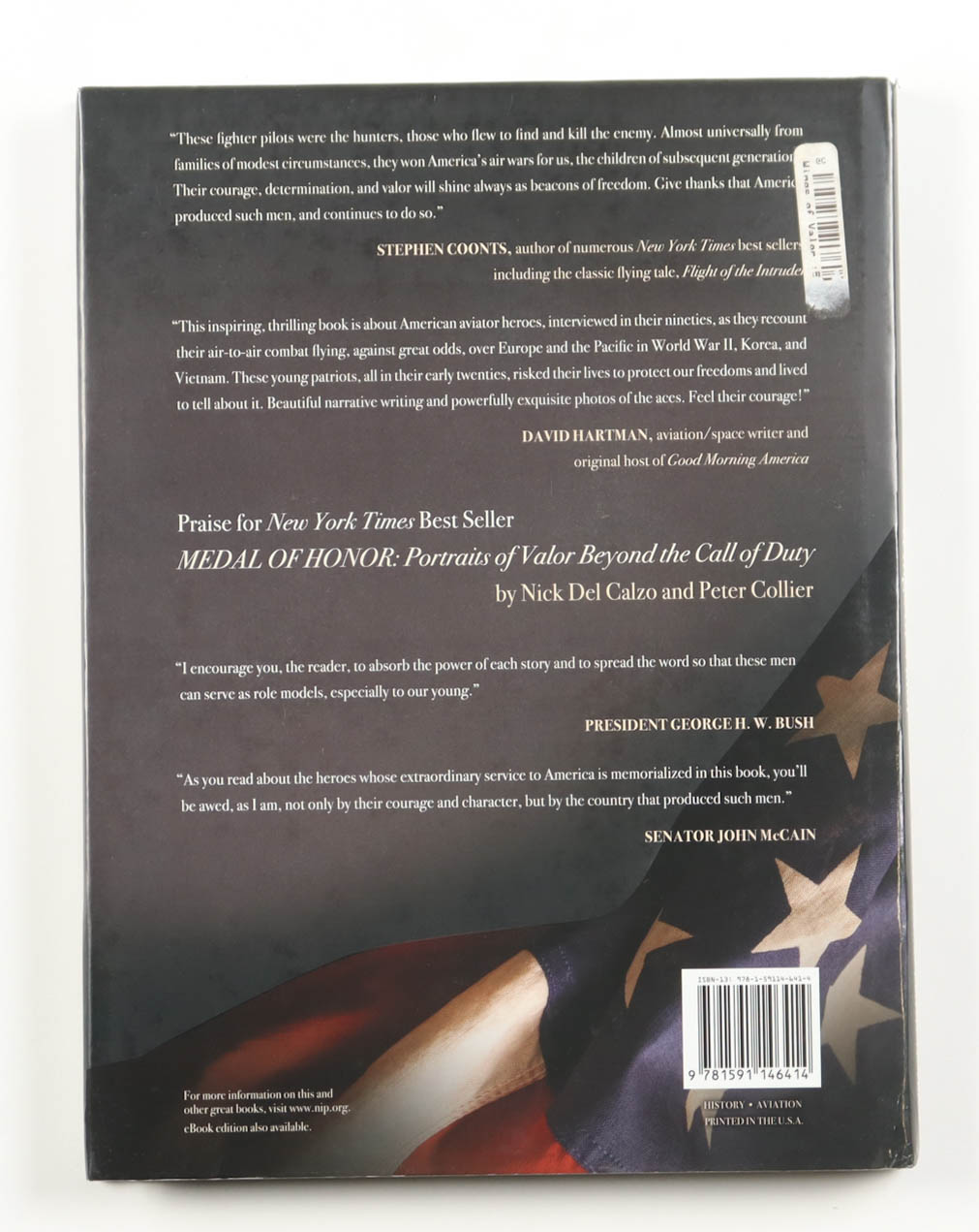 Hardcover book has been hand-signed on the inside cover page by Bud Anderson, Abner Aust Jr., Steve Pisanos, and Frank McCauley.