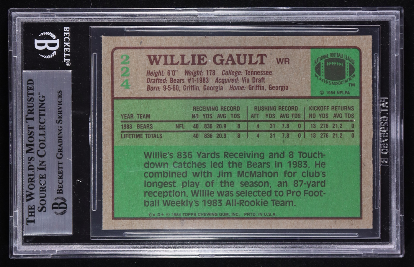 Willie Gault Signed 1984 Topps #224 RC (BGS)