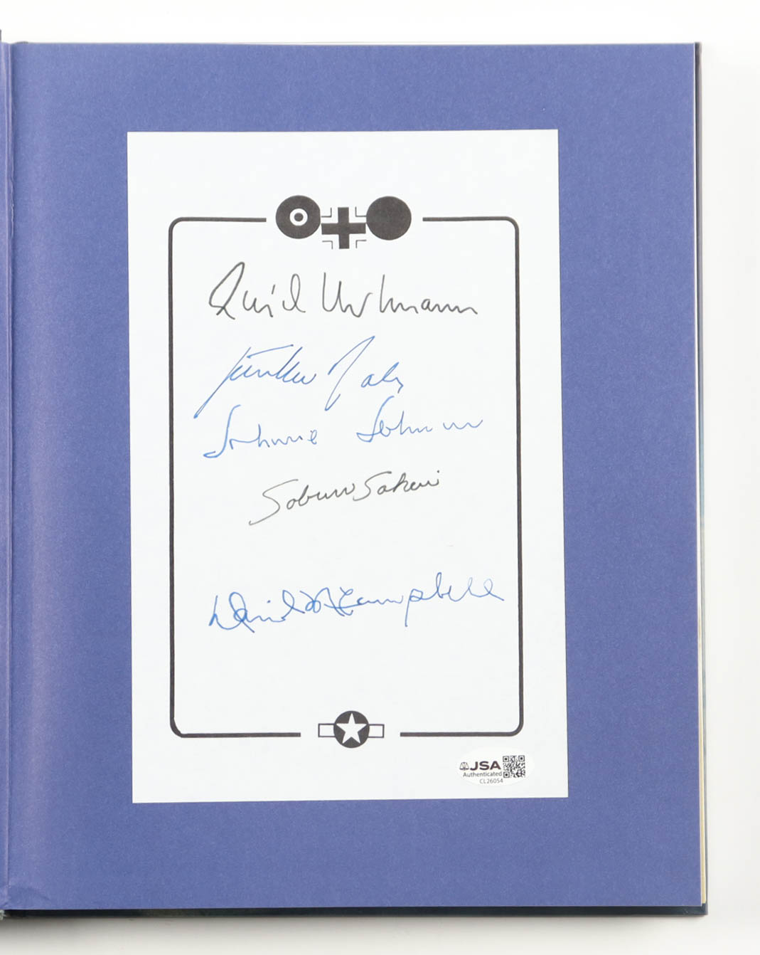 "Aces: True Stories Of Victory & Valor" Hardcover Book has been hand-signed on the inside cover page by (5) with Erich Hartmann, Gunther Rall, Johnnie Johnson, Saburo Sakai and David McCampbell. Please note, there is some scuffing as well as edge and corner wear on the cover.