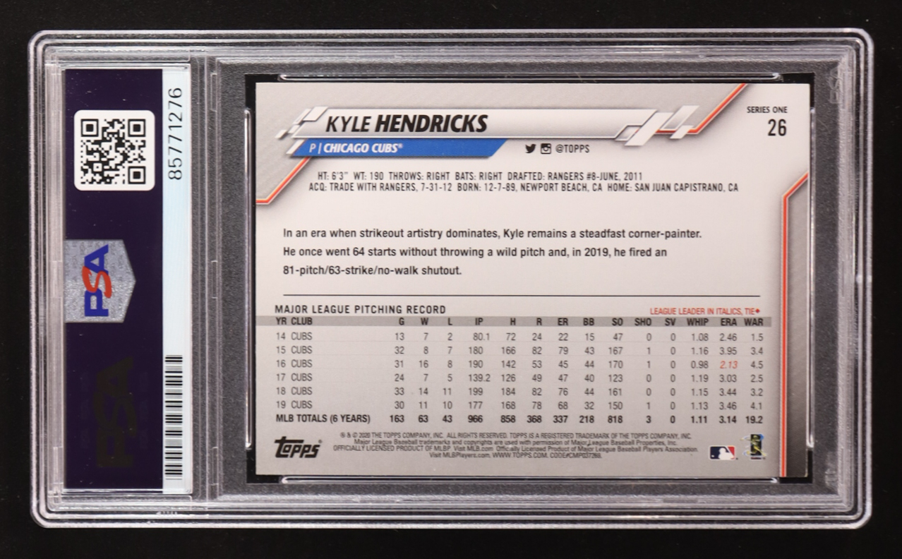 Kyle Hendricks Signed 2020 Topps Update Series One #26 (PSA | Autograph Graded PSA 10)