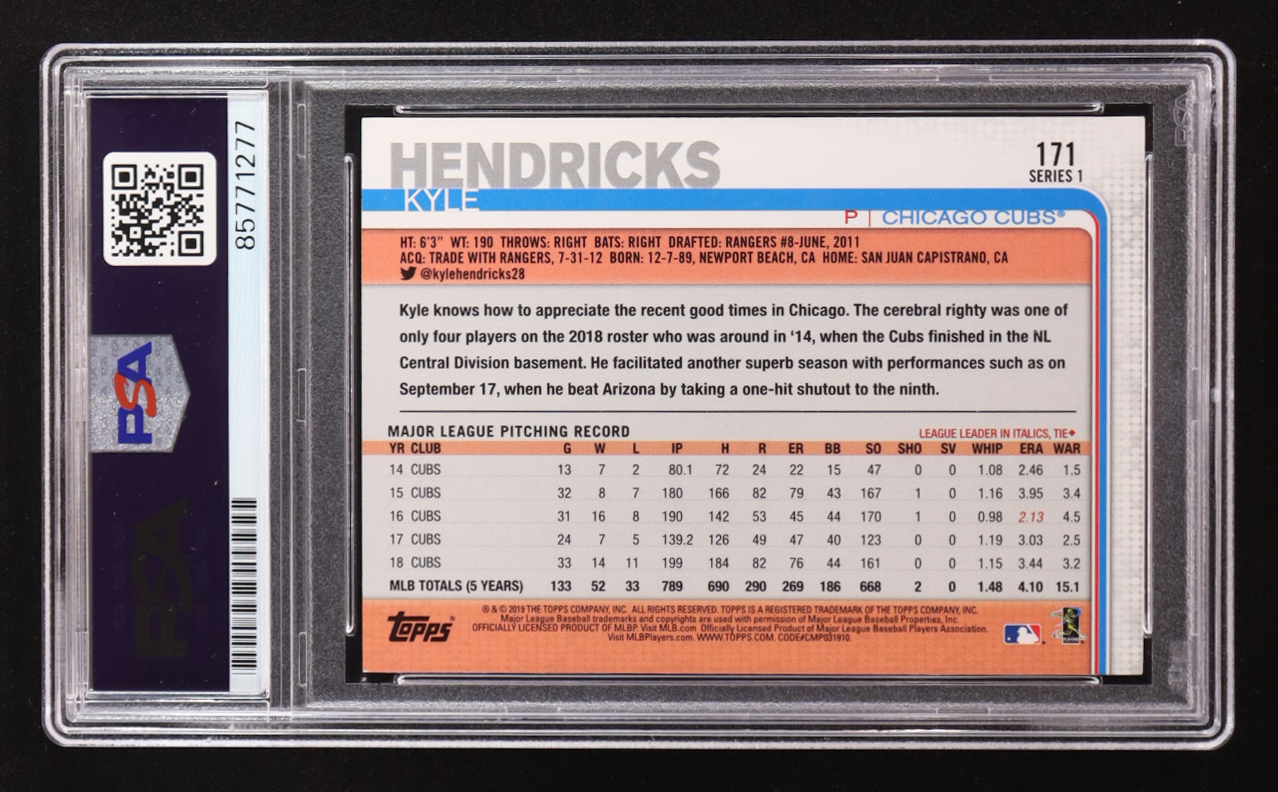 Kyle Hendricks Signed 2019 Topps Update Series One #171 (PSA | Autograph Graded PSA 10)