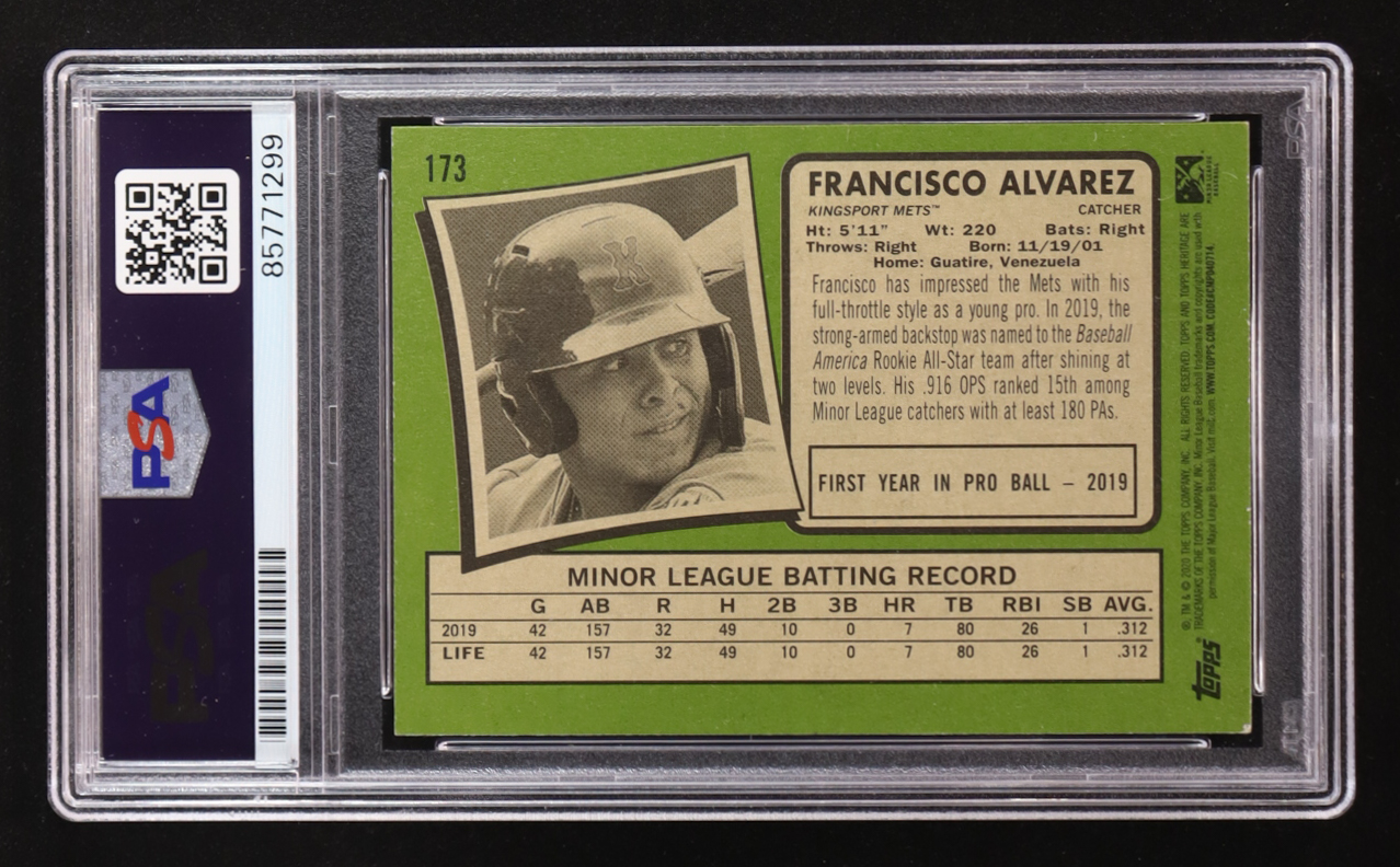 Francisco Alvarez Signed 2020 Topps Heritage #173 RC (PSA | Autograph Graded PSA 10)