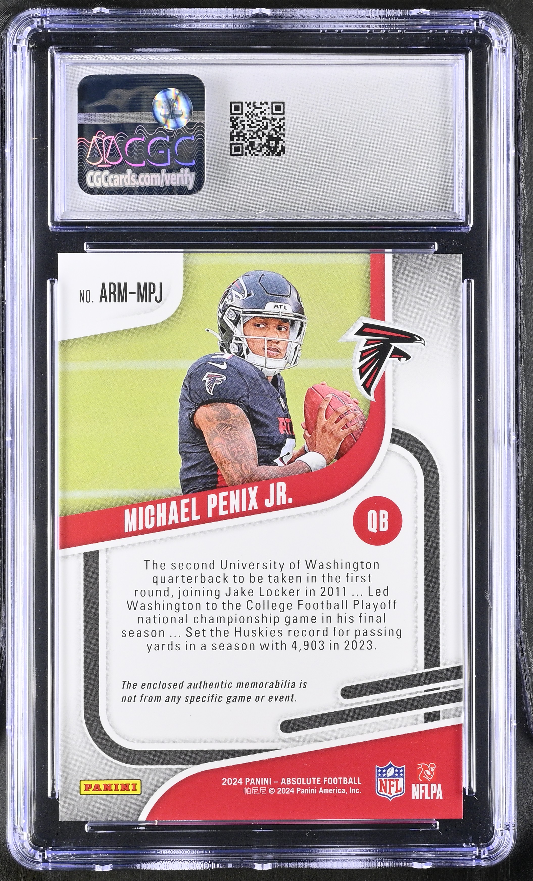 Michael Penix Jr. 2024 Panini Absolute Rookie Materials #ARM-MPJ RC (CGC 9)