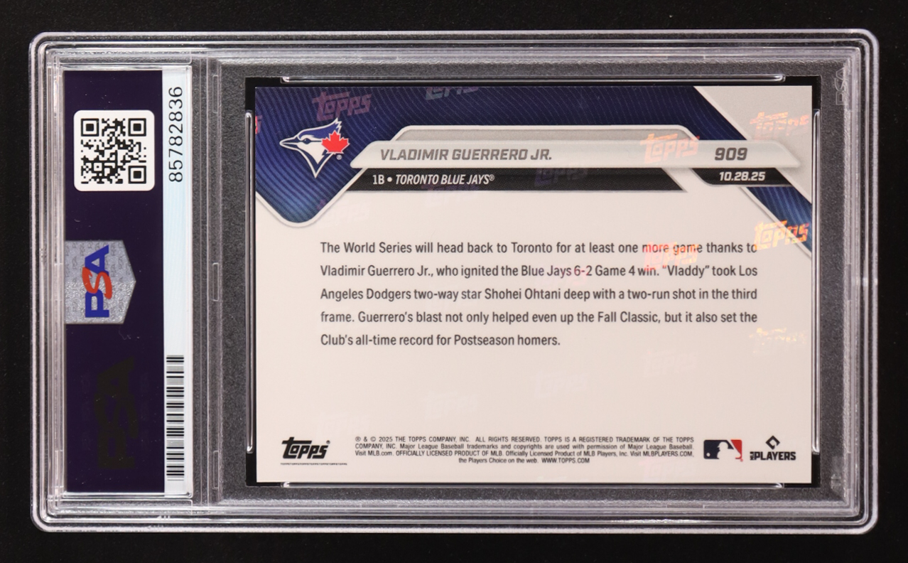 Vladimir Guerrero Jr. Signed 2025 Topps Now #909 (PSA | Autograph Graded PSA 10)
