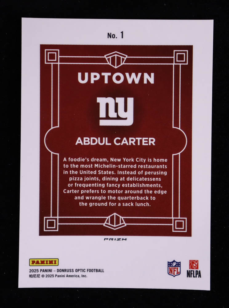 Abdul Carter 2025 Donruss Optic Uptown #1 RC