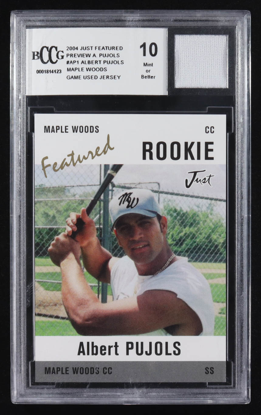 Albert Pujols 2004 Just Featured Preview Pujols #AP1 RC With Game-Used Jersey (BCCG 10)