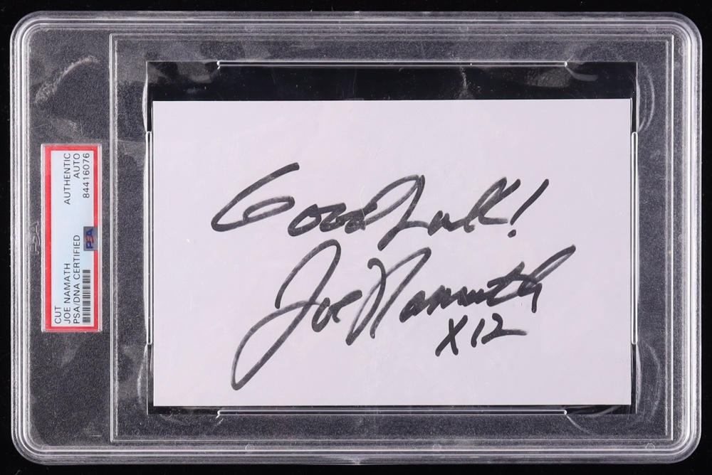 Joe Namath Signed 4x7 Cut Inscribed "Good Luck!" (PSA)