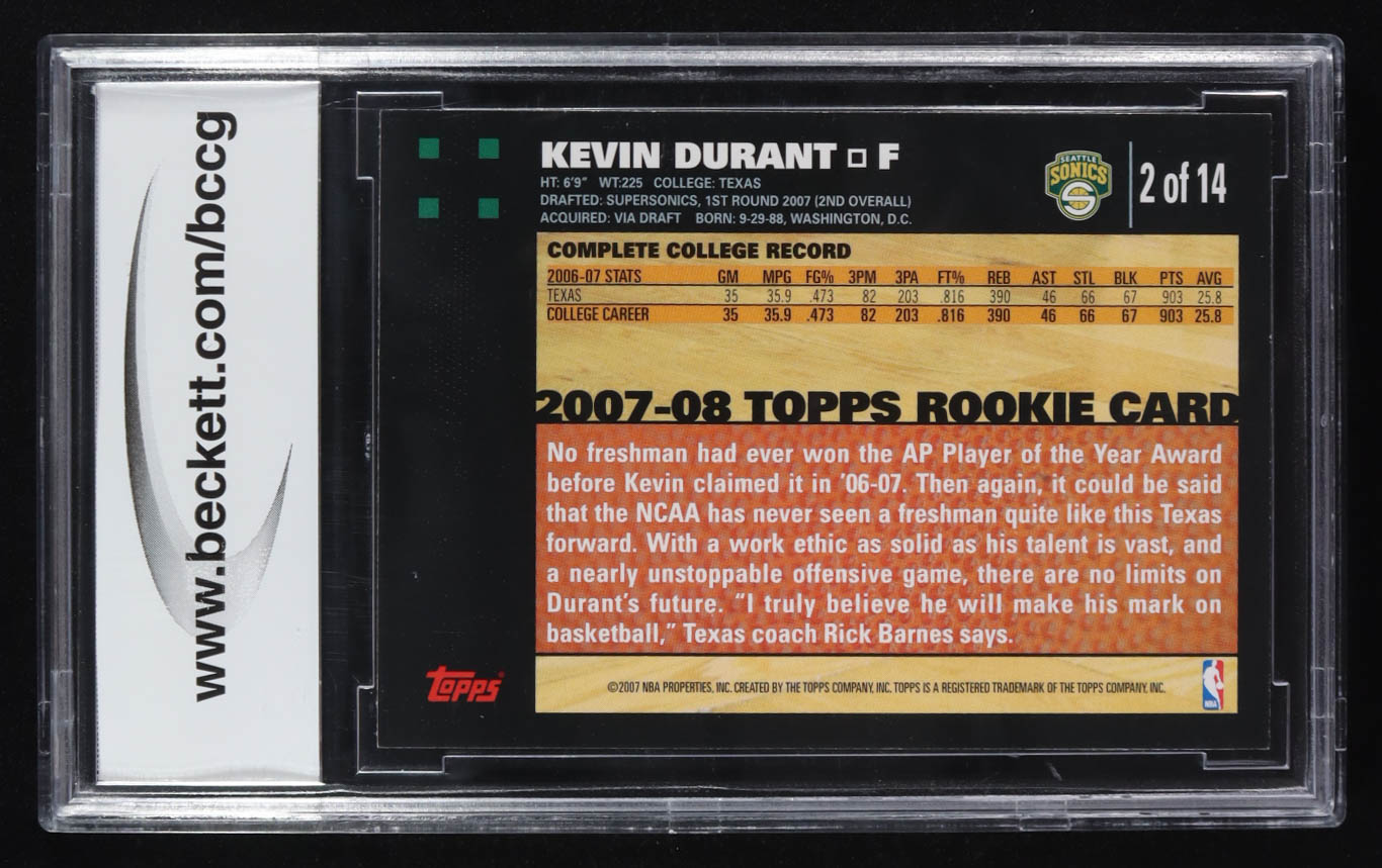 Kevin Durant 2007-08 Topps Rookie Set #2 RC (BCCG 10)