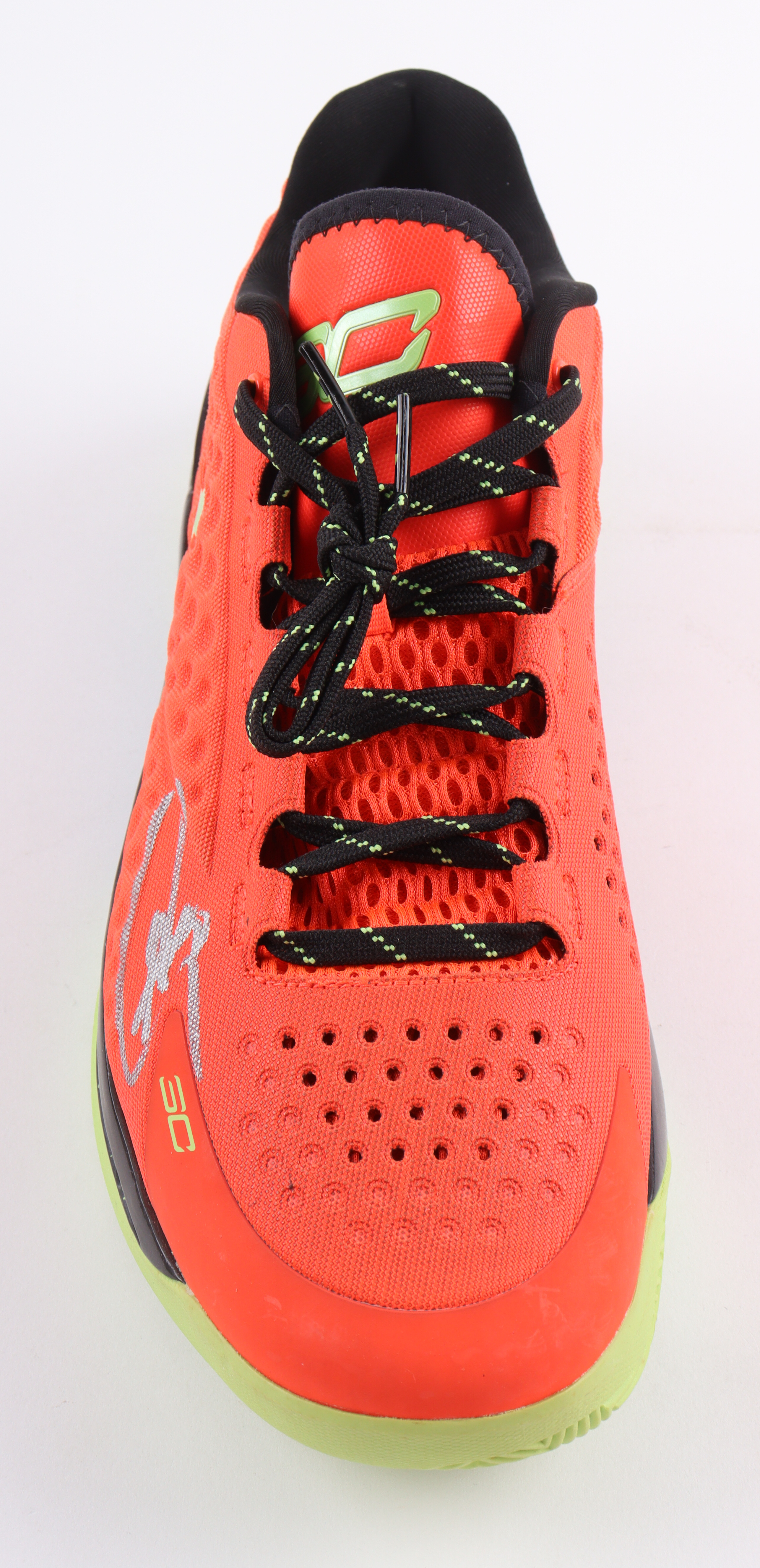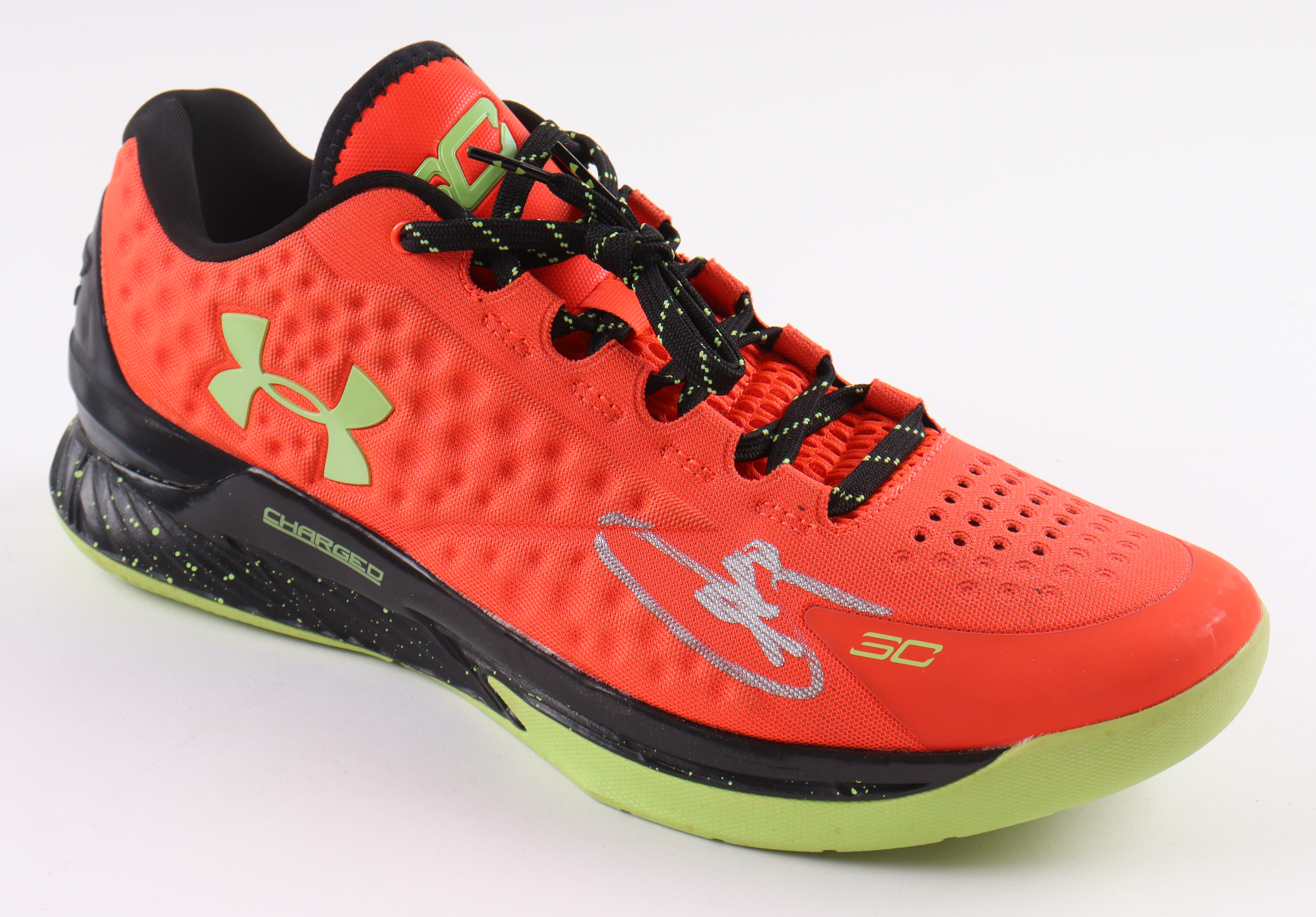 Under Armour Curry 1 Bolt Orange basketball shoe. Hand-signed by Stephen Curry (Golden State Warriors). See photos for more details.