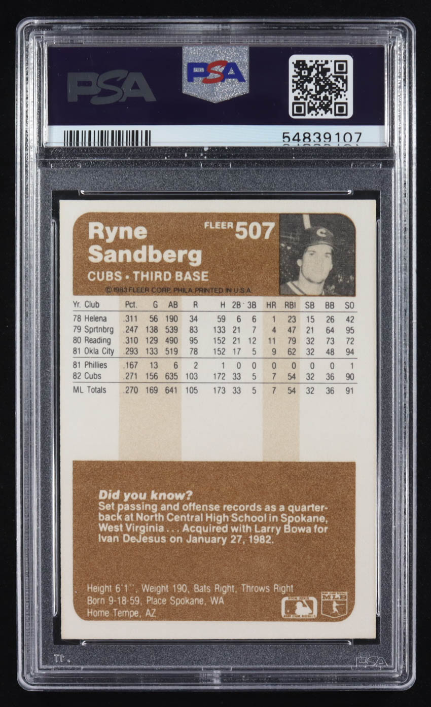 Ryne Sandberg 1983 Fleer #507 RC (PSA 9)