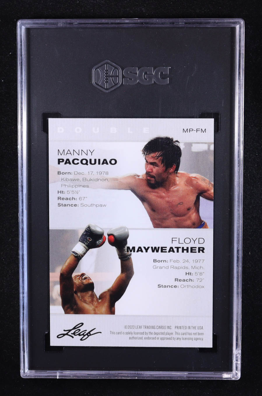 Manny Pacquiao / Floyd Mayweather Jr. 2022 Leaf Special Release Exclusive Legends Edition Double #MP-FM (SGC 10)