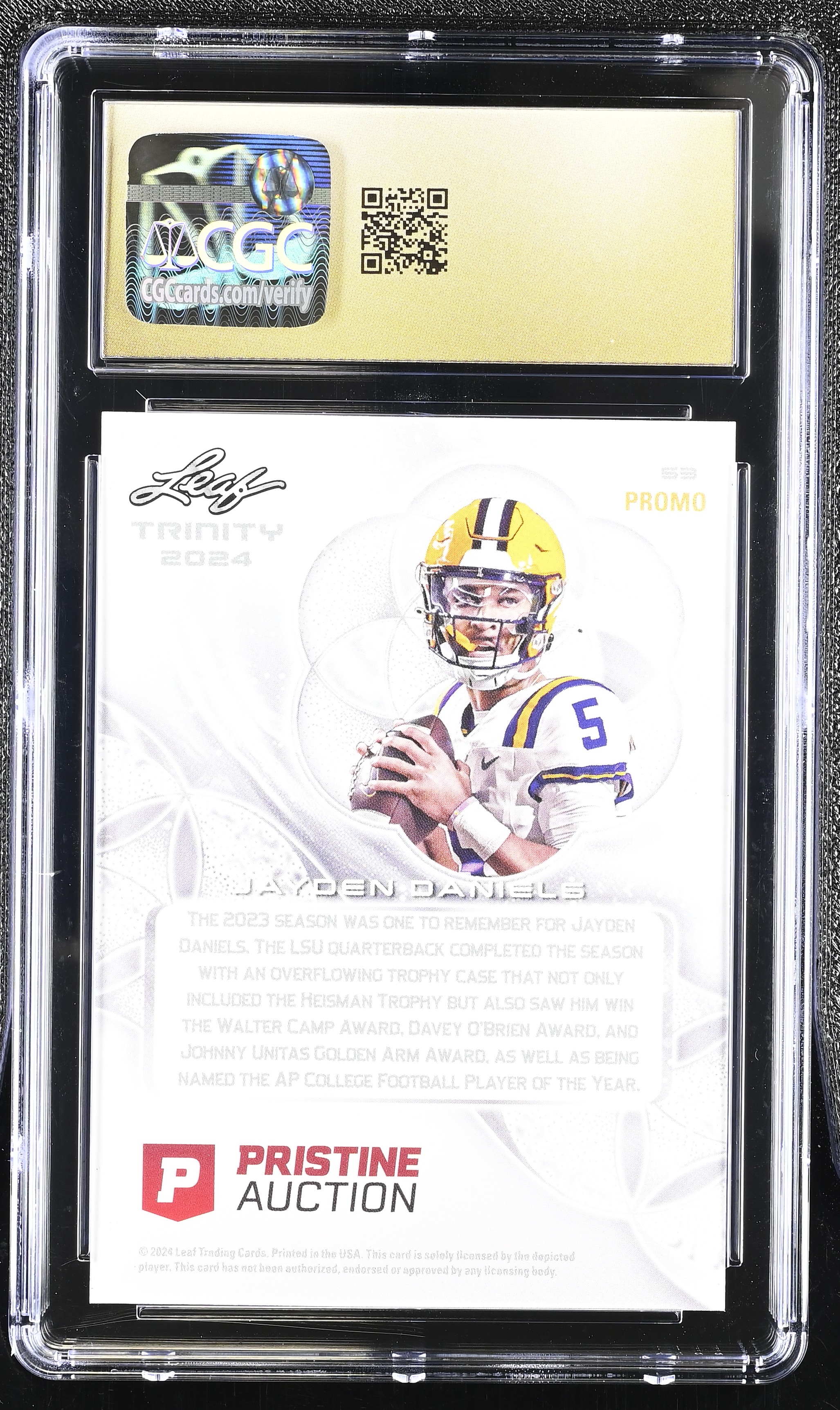 Jayden Daniels 2024 Leaf Trinity Pristine #53 RC (CGC Pristine 10 | Black Label)