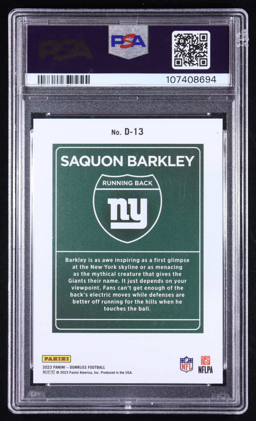 Saquon Barkley 2023 Donruss Downtown #13 (PSA 9)