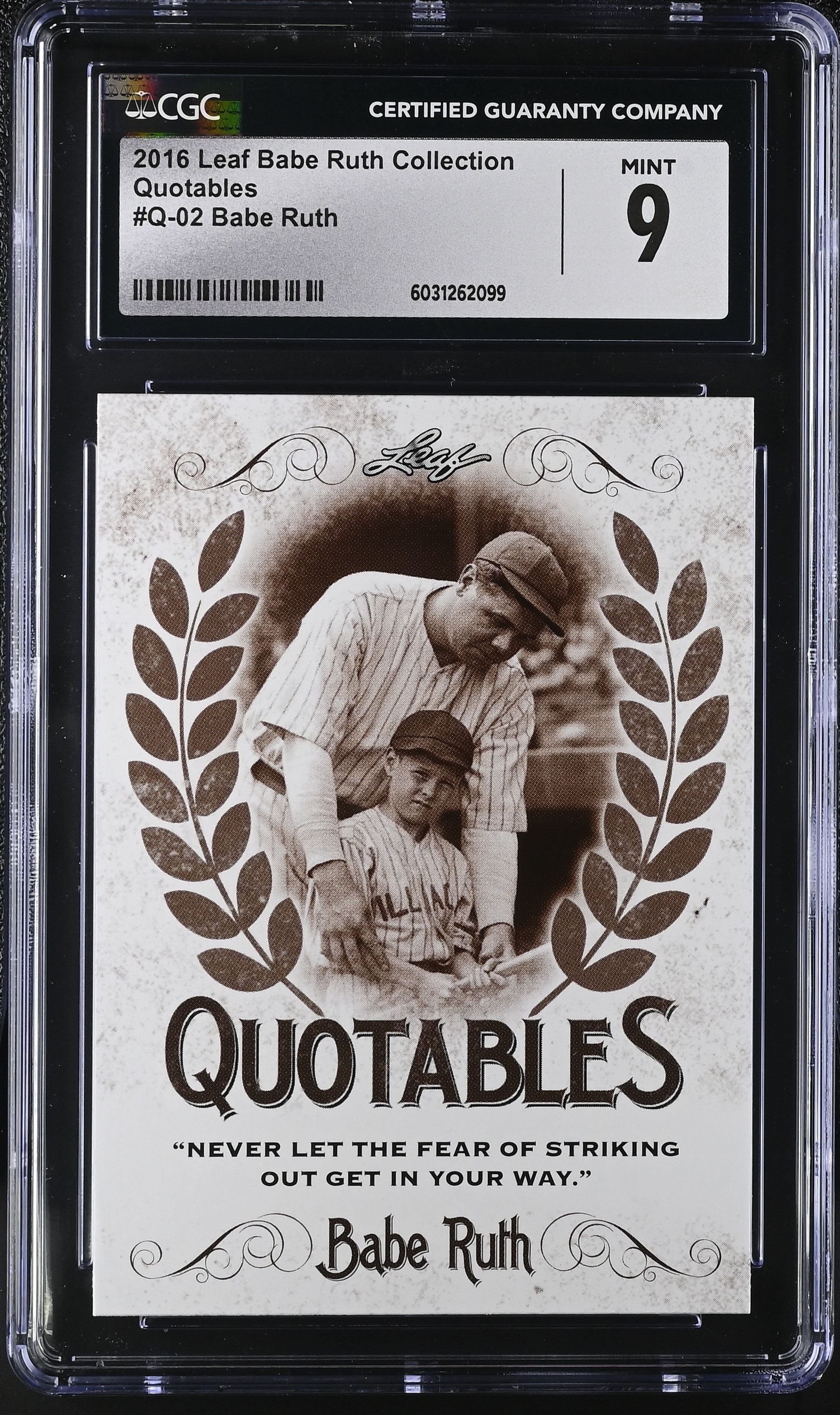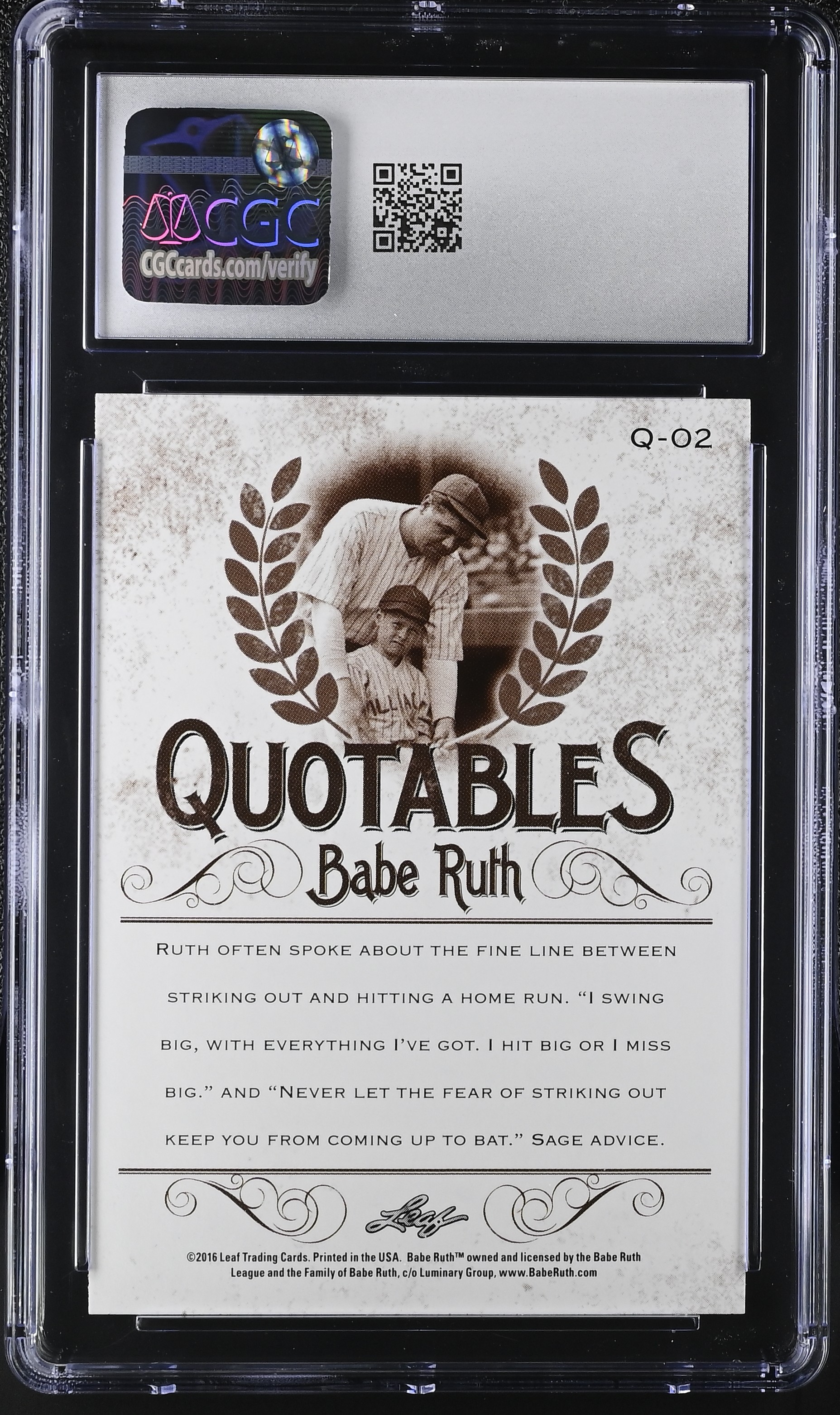 Babe Ruth 2016 Leaf Babe Ruth Collection Quotables #Q-02 (CGC 9)