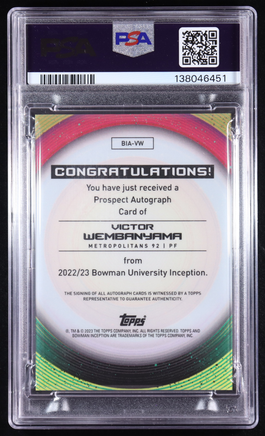 Victor Wembanyama 2022-23 Bowman Inception University Autographs #BIAVW RC (PSA 9)