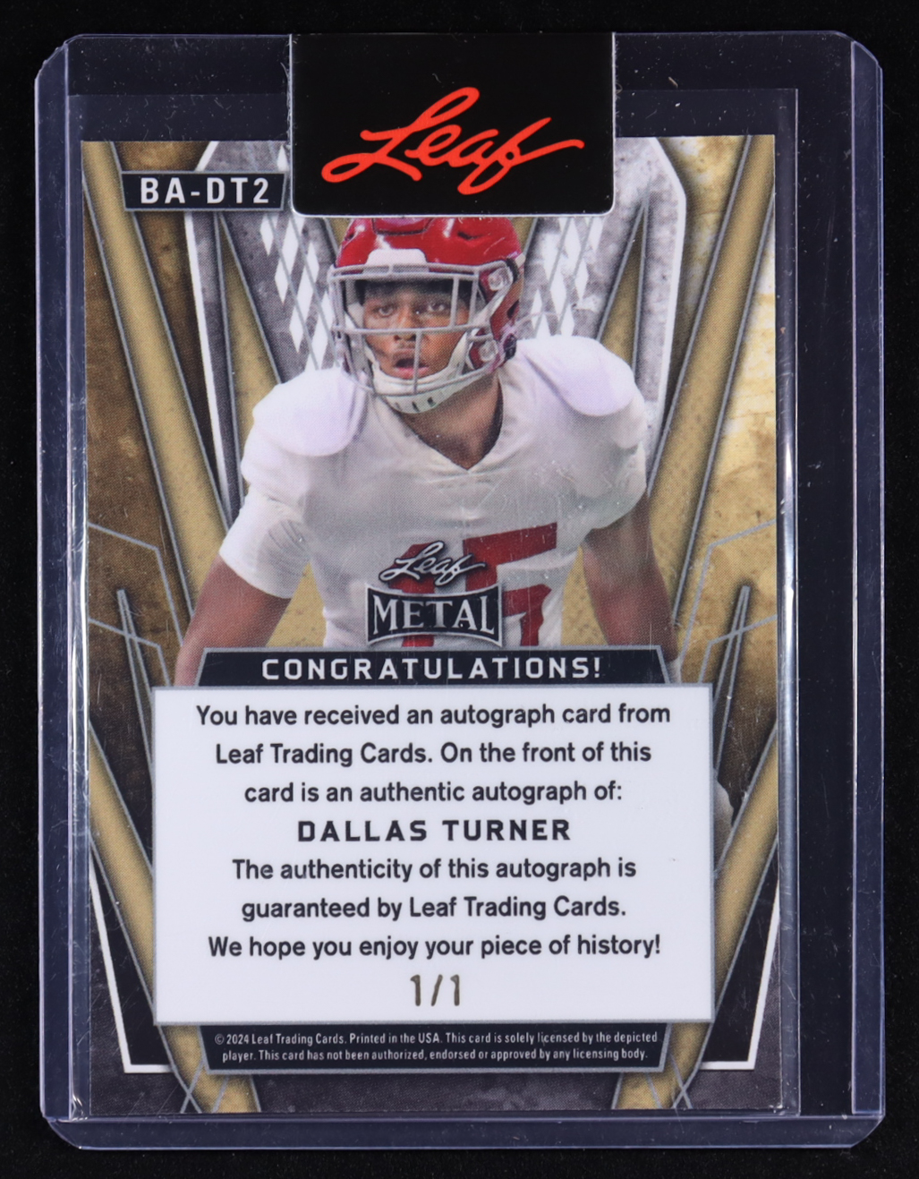 Dallas Turner 2024 Leaf Metal Autographs Air Wave #BADT2 #1/1 RC