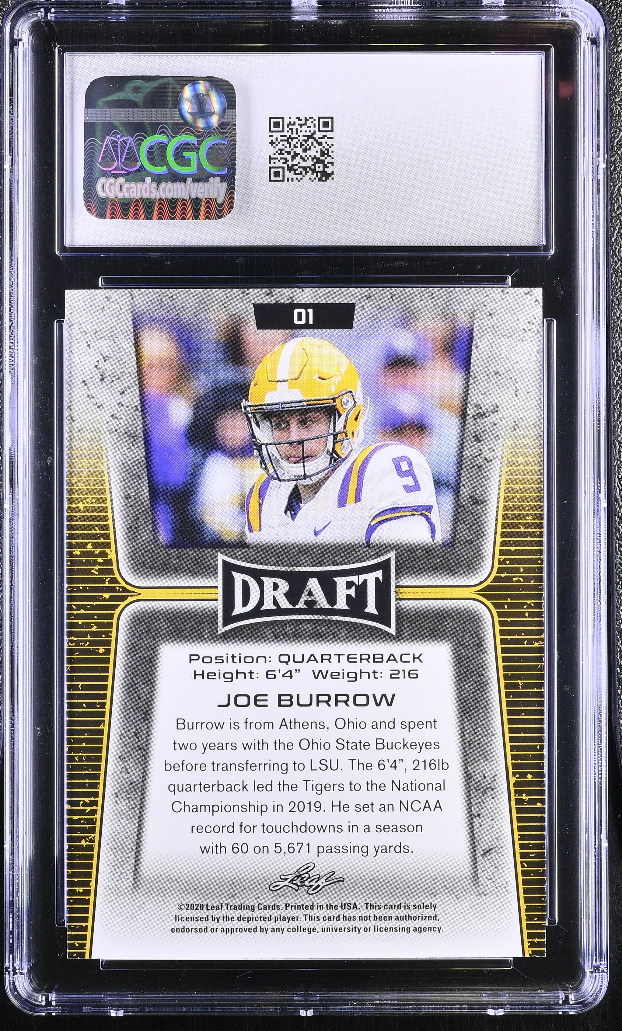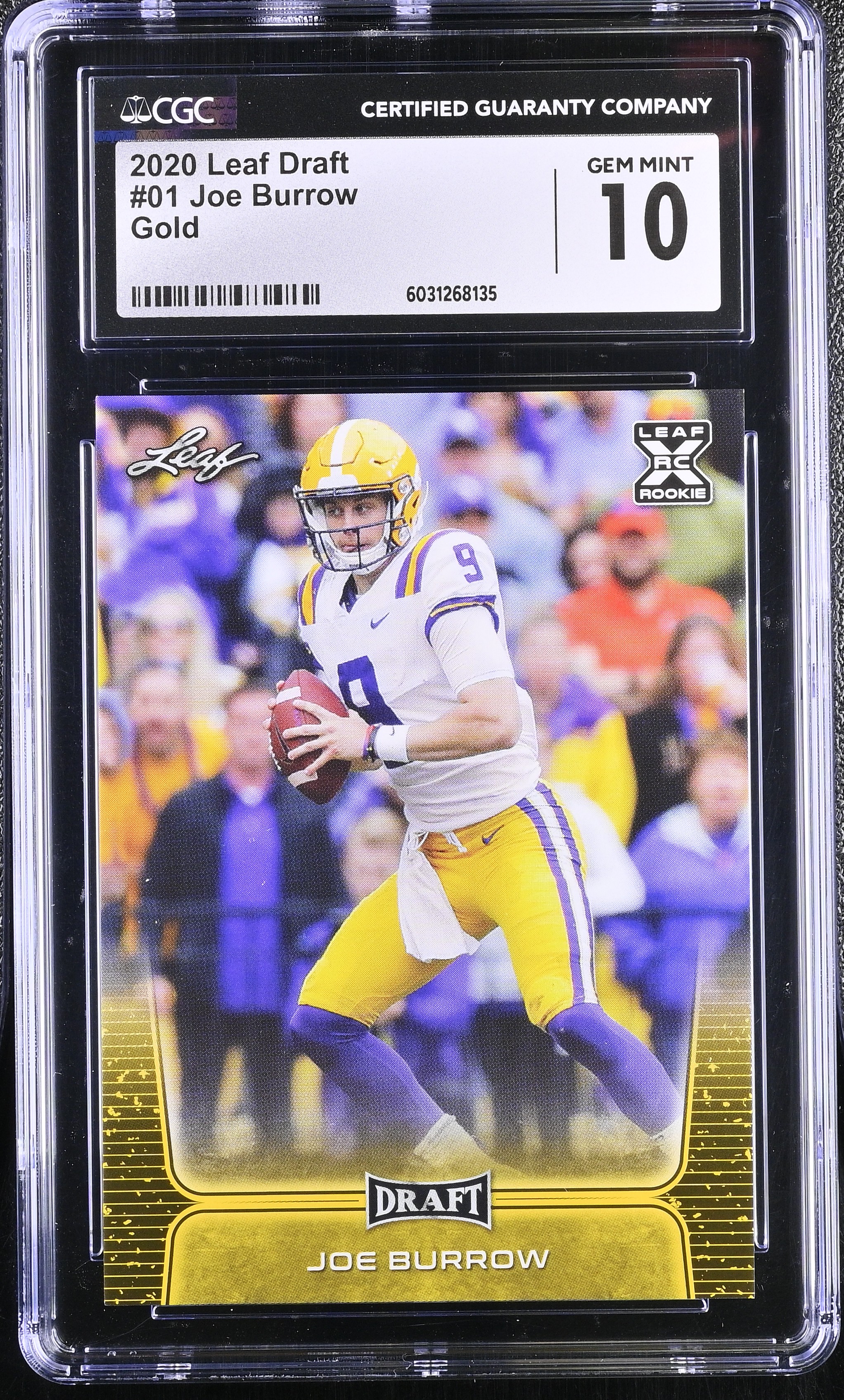 Joe Burrow 2020 Leaf Draft Gold #01 RC (CGC 10)