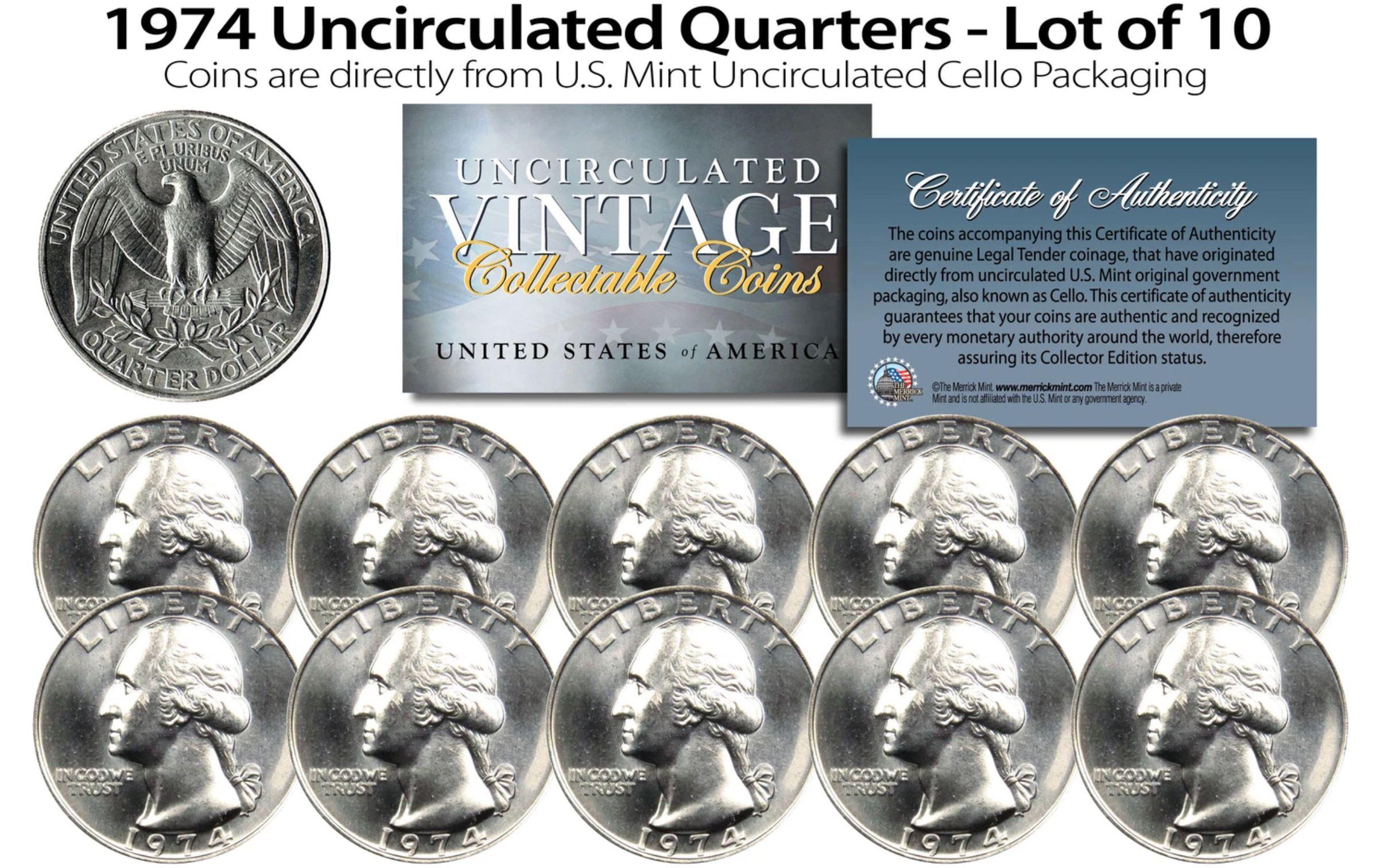 Set of (10) 1974 Uncirculated Quarters U.S. Coins Direct from US Mint Cello Packs