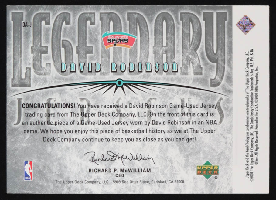 David Robinson 2000-01 Upper Deck Legends Legendary Jerseys #DAJ