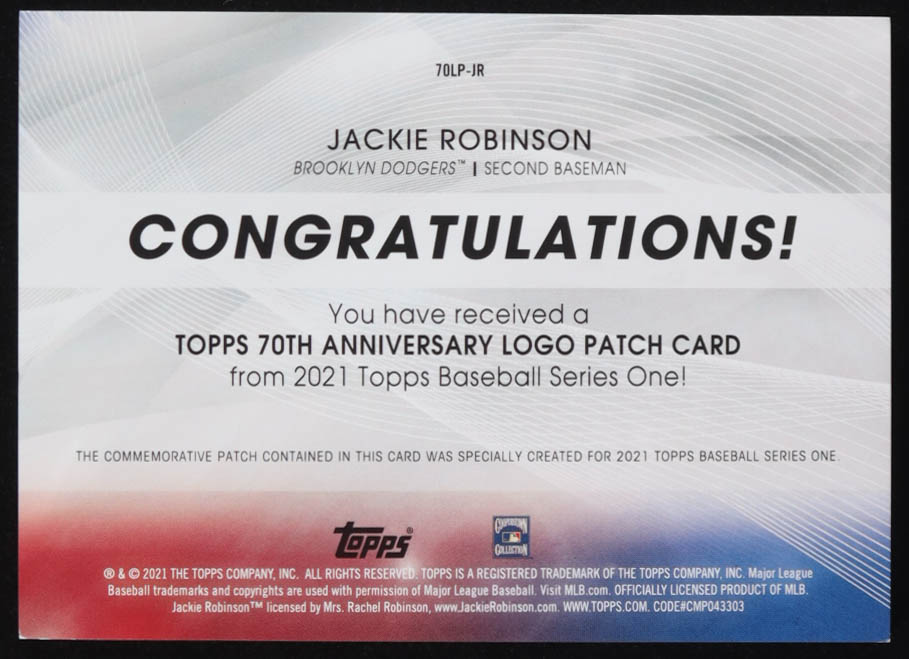 Jackie Robinson 2021 Topps 70th Anniversary Commemorative Logo Patches #70LPJR