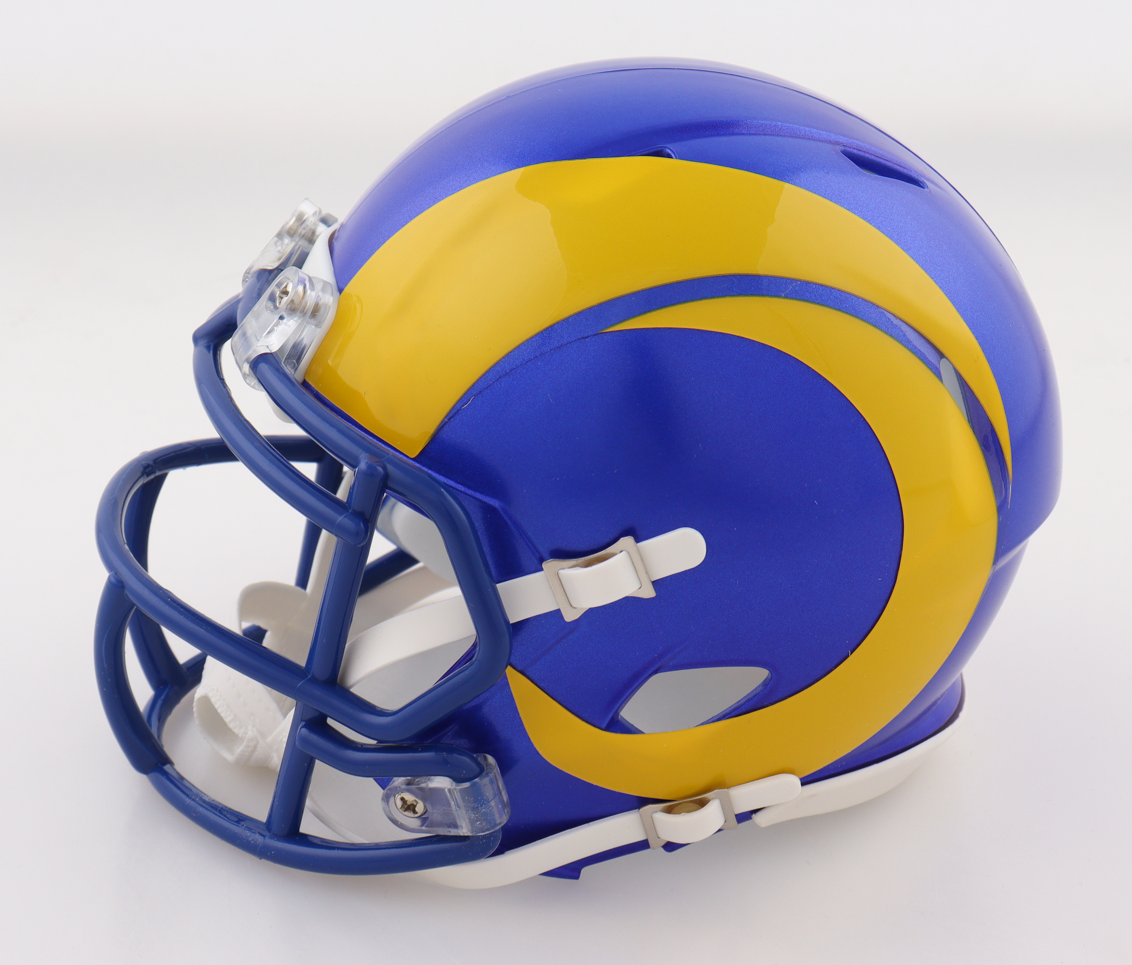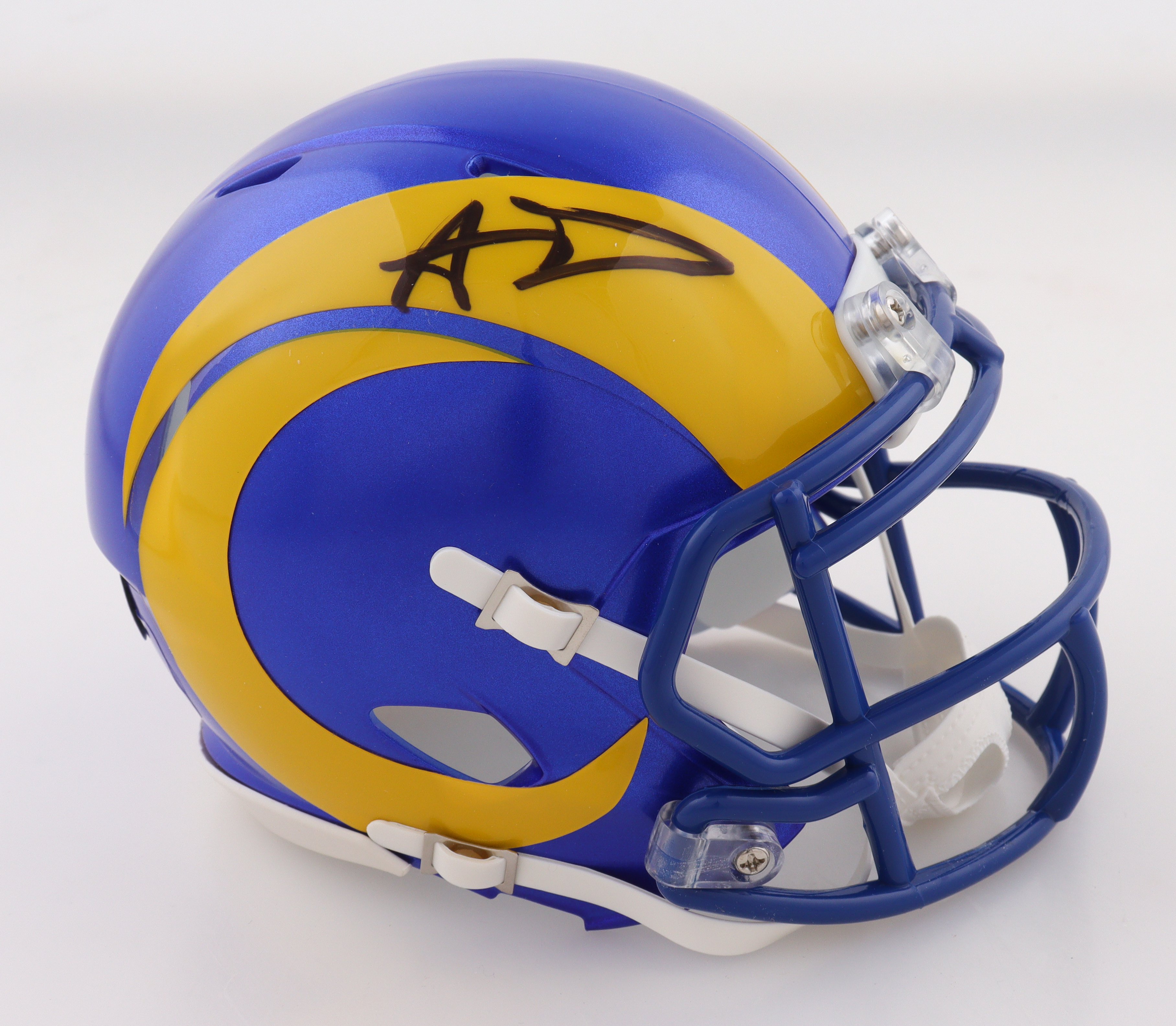 Riddell Los Angeles Rams Speed Mini Helmet. Hand-signed by Aaron Donald.