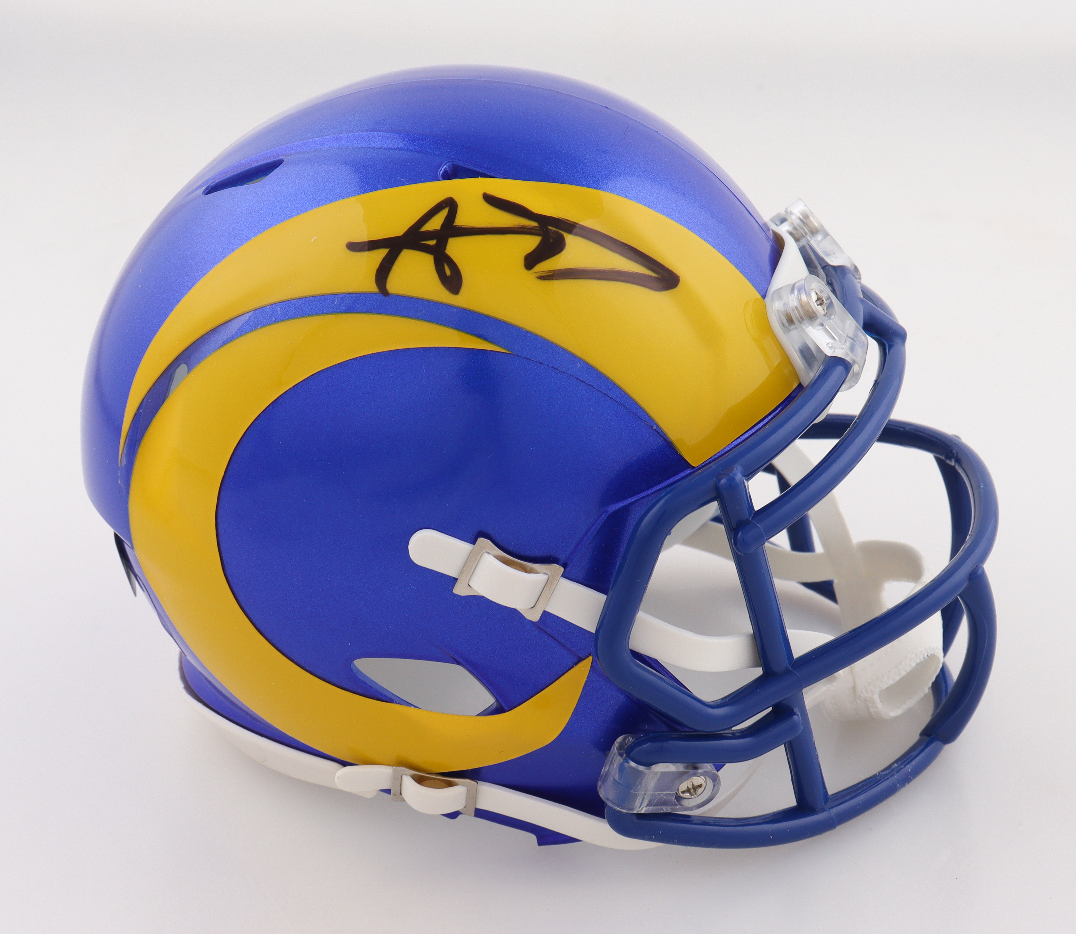 Riddell Los Angeles Rams Speed Mini Helmet. Hand-signed by Aaron Donald.