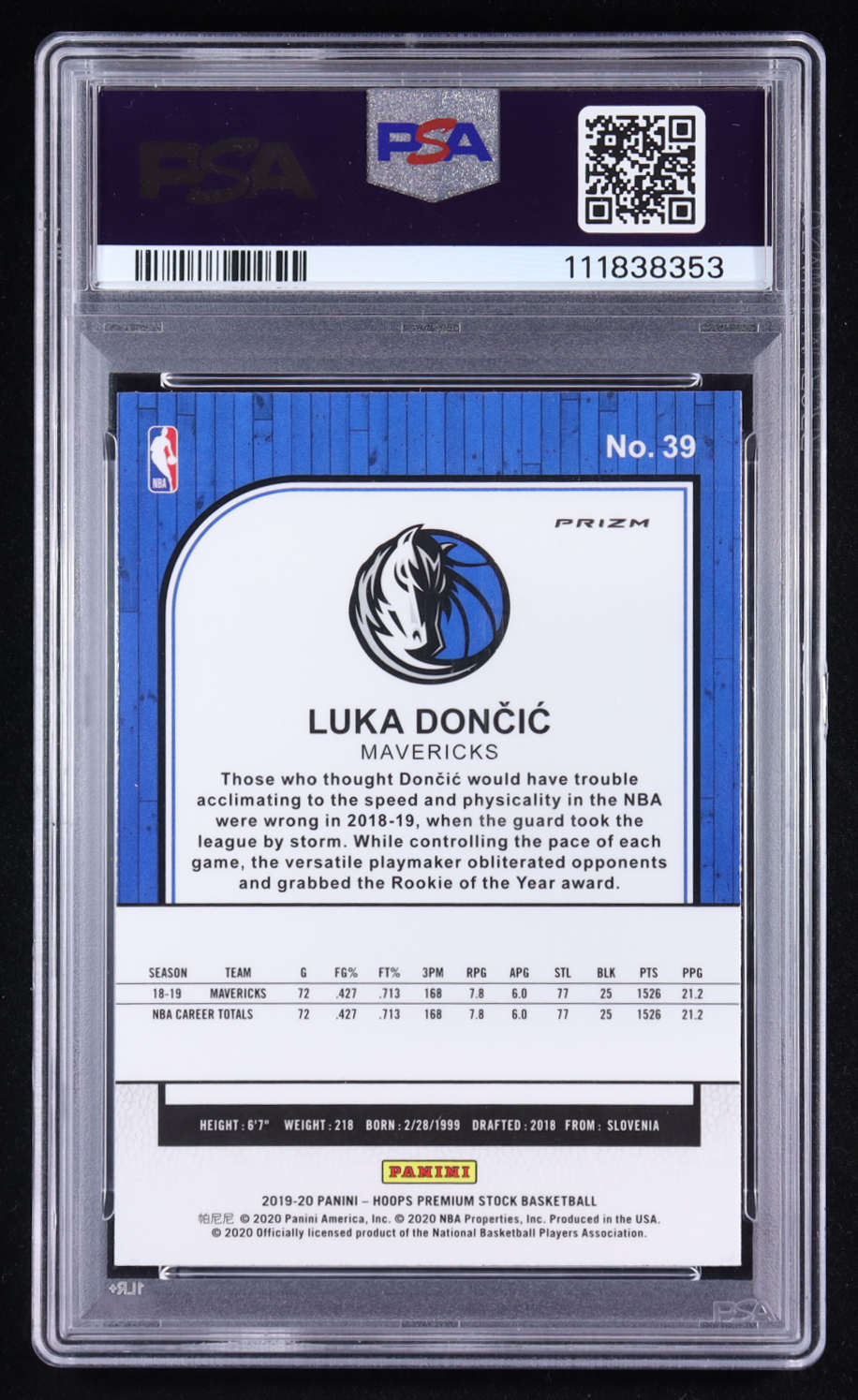Luka Doncic 2019-20 Hoops Premium Stock Prizms Silver #39 (PSA 10)