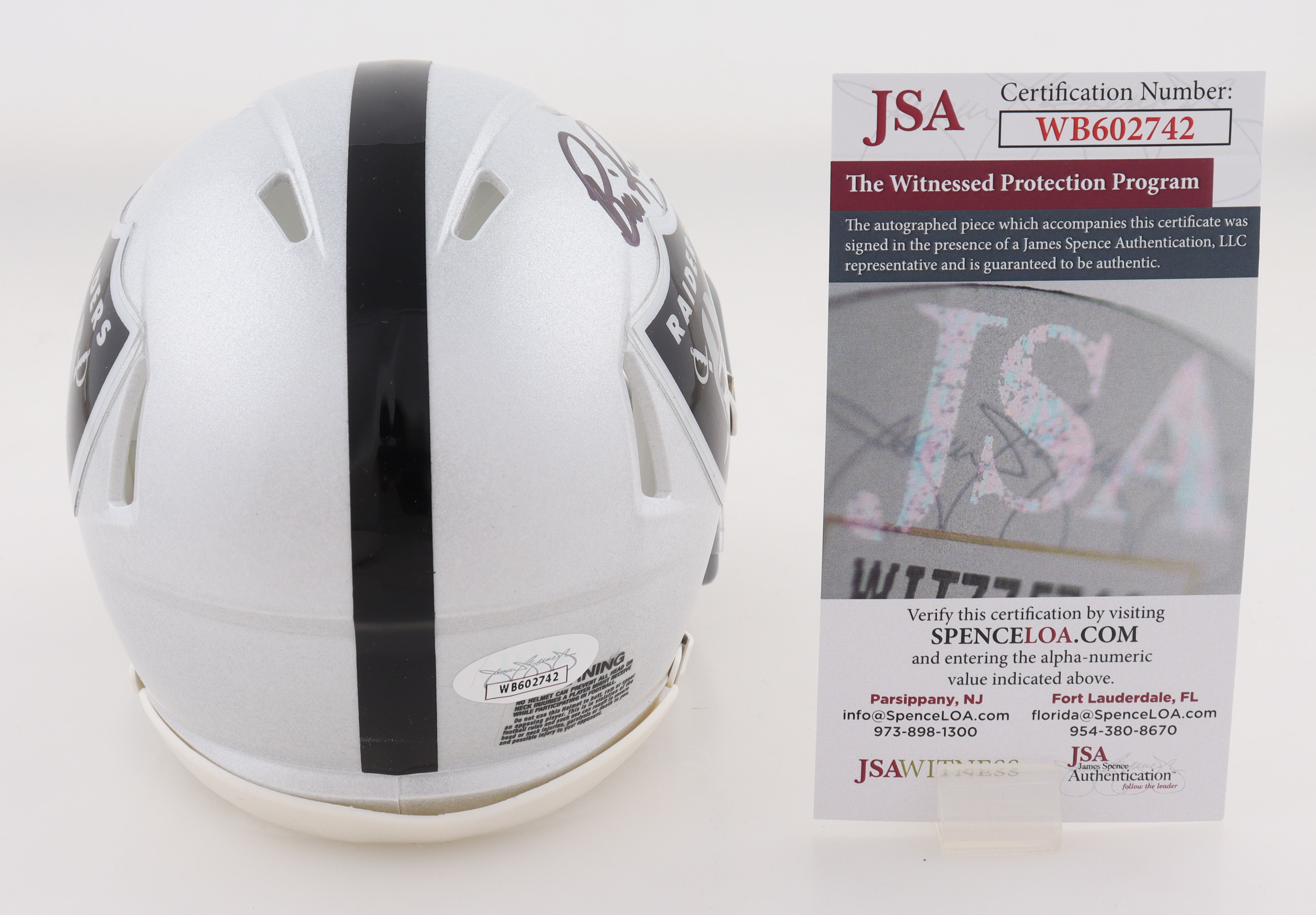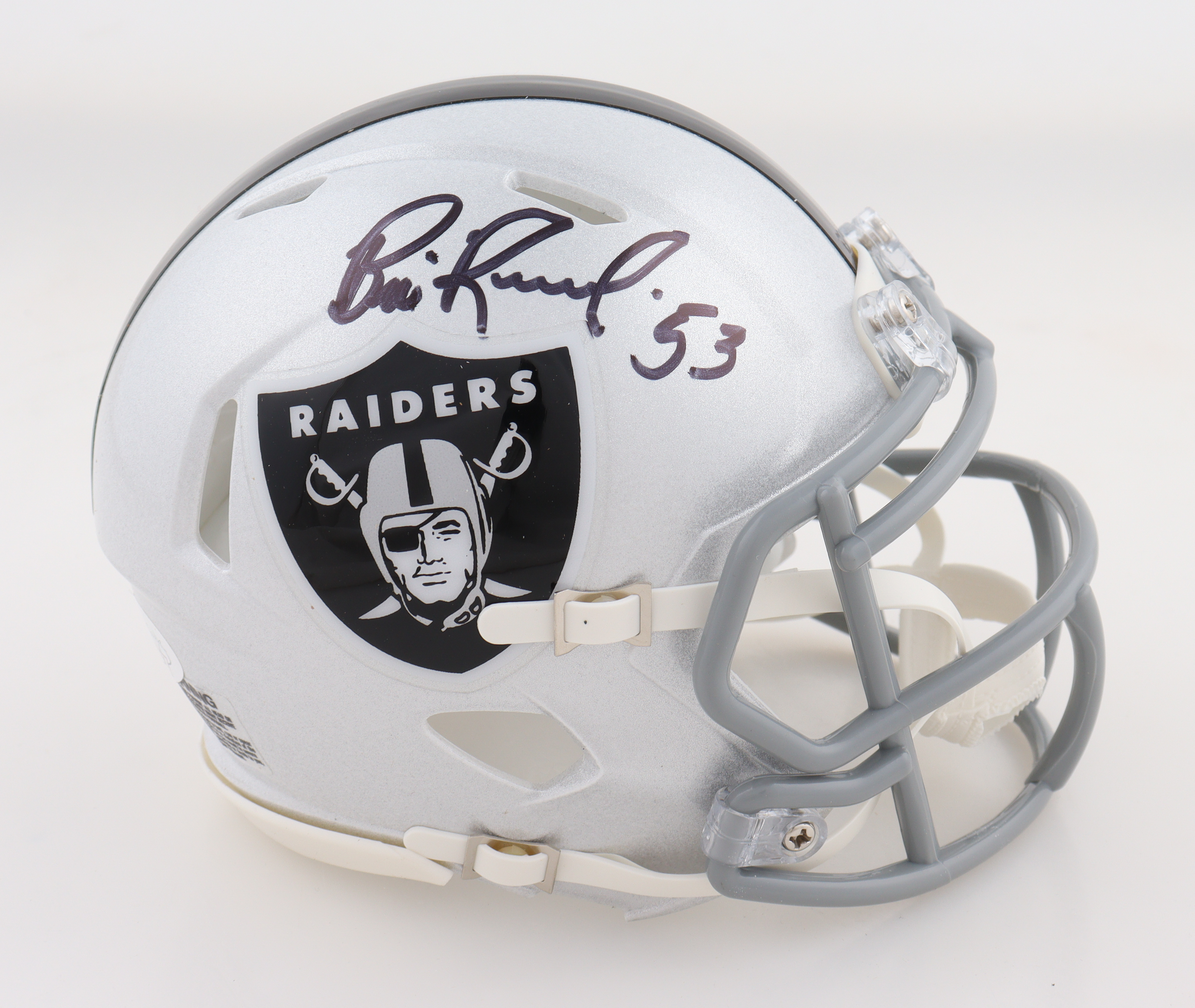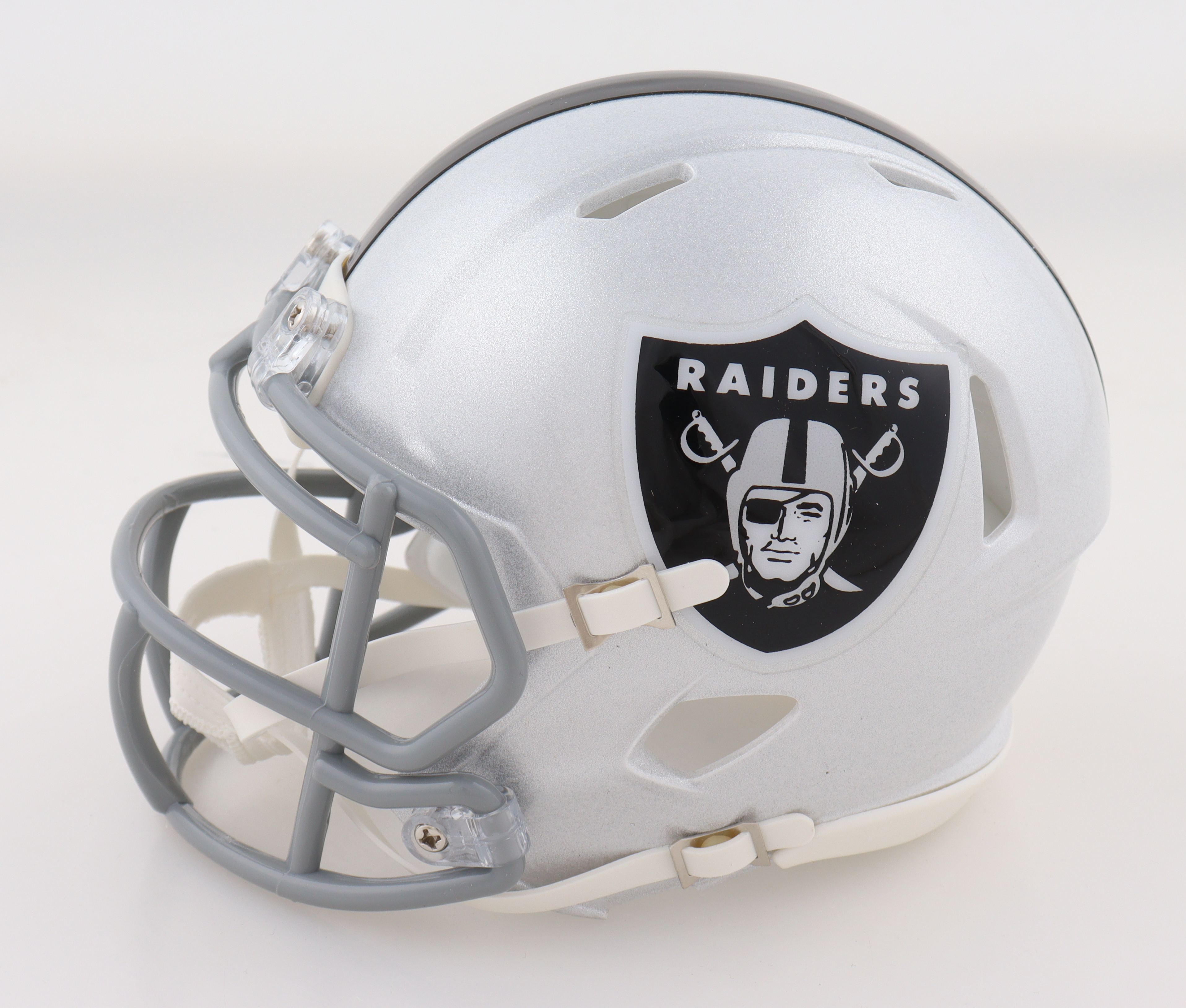 Riddell Las Vegas Raiders Speed mini helmet. Hand-signed by Bill Romanowski.