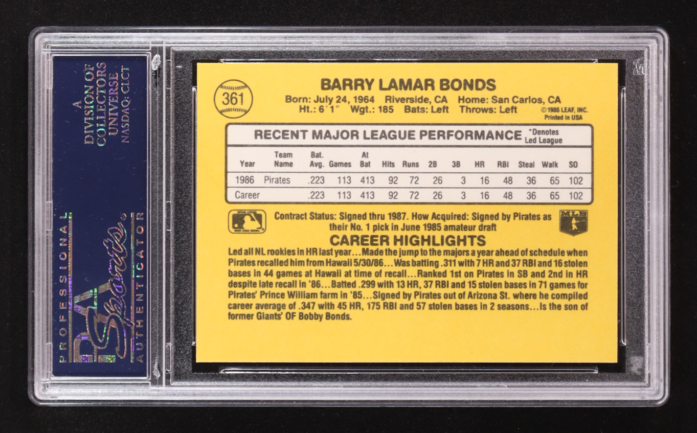 Barry Bonds 1987 Donruss #361 RC (PSA 9)