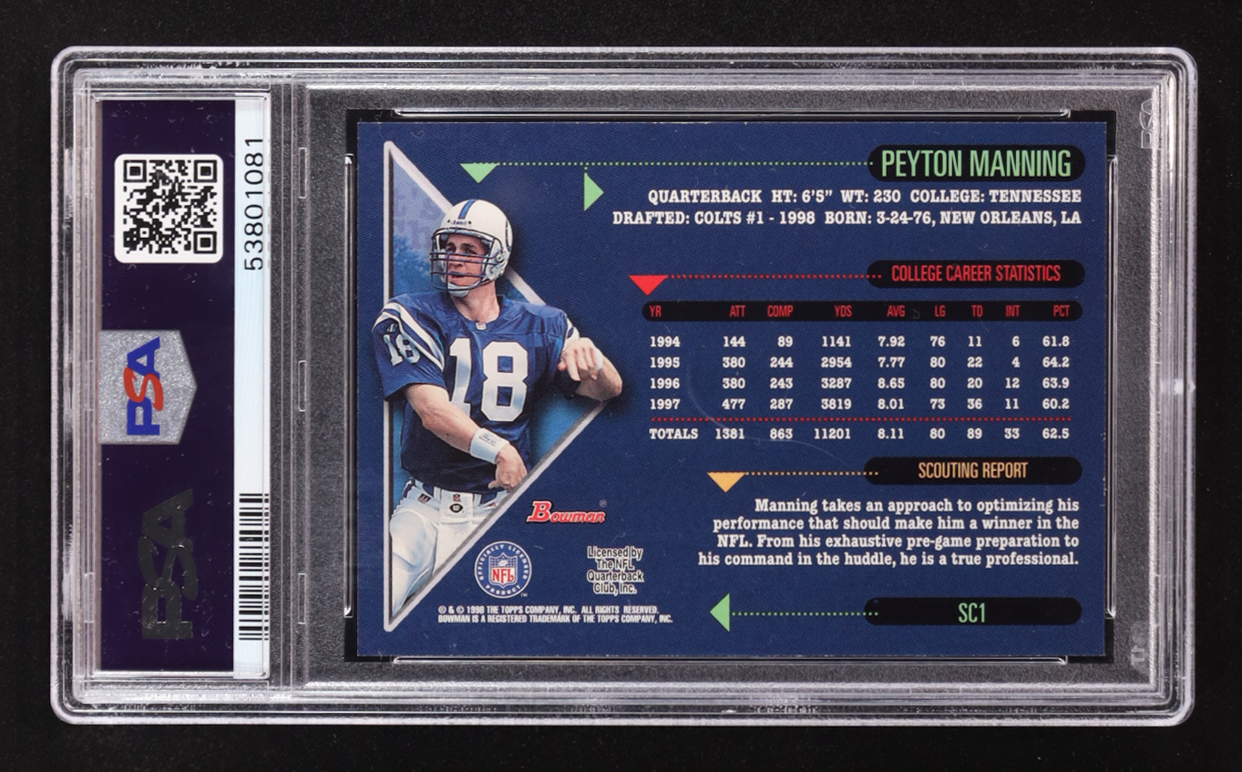 Peyton Manning 1998 Bowman Scout's Choice #SC1 RC (PSA 9)