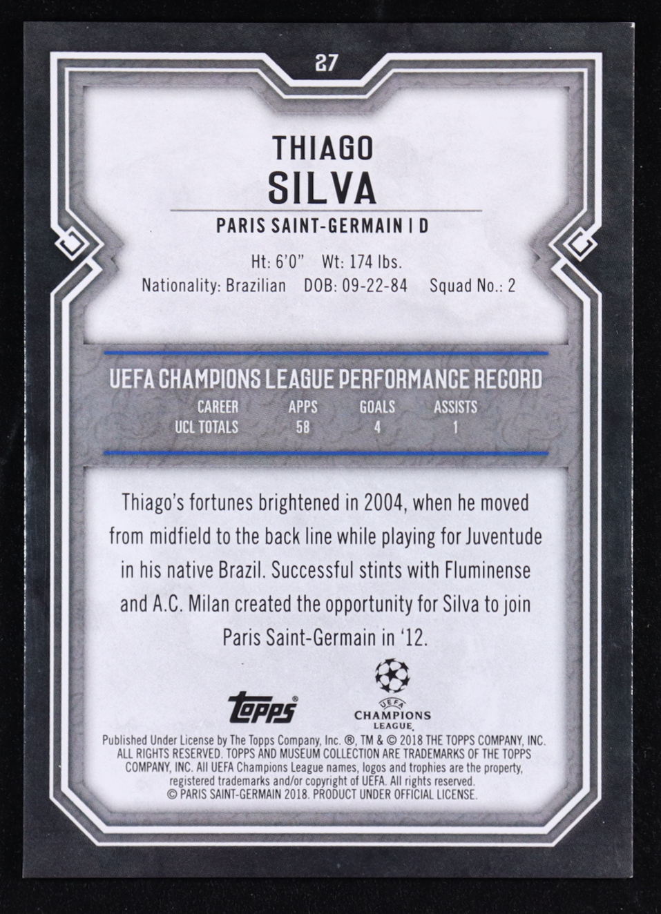 Thiago Silva 2017-18 Topps Museum Collection UEFA Champions League Ruby #27 #12/25