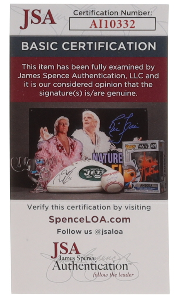 The autograph includes an official James Spence Authentication (JSA) hologram and matching COA for authenticity purposes.