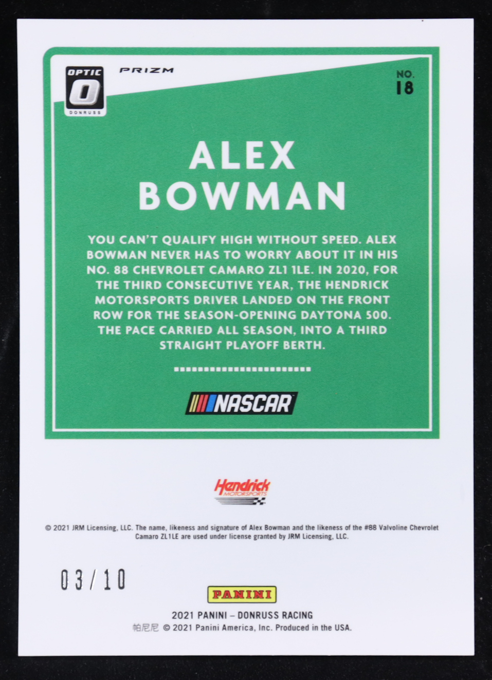 Alex Bowman 2021 Donruss Optic Gold #18 #03/10
