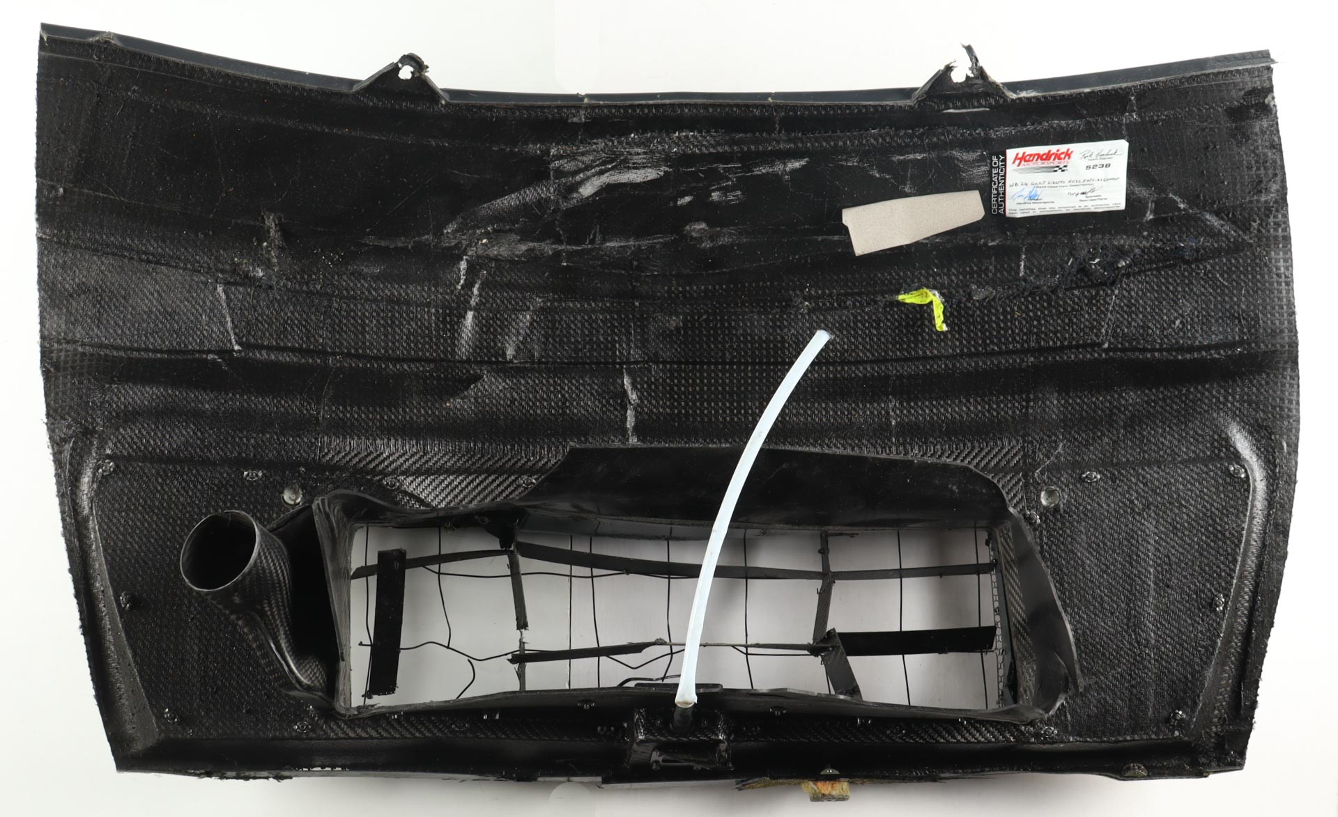 Race-Used Center Nose Car Piece from William Byron's Gen 7 #24 Liberty University. Authenticated by the Director and Race Used Parts Specialist at Hendrick Motorsports.