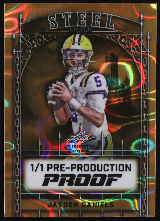 Jayden Daniels 2024 Leaf Trinity Steel Iron Orange Lava Pre-Production Proof #NNO #1/1 RC