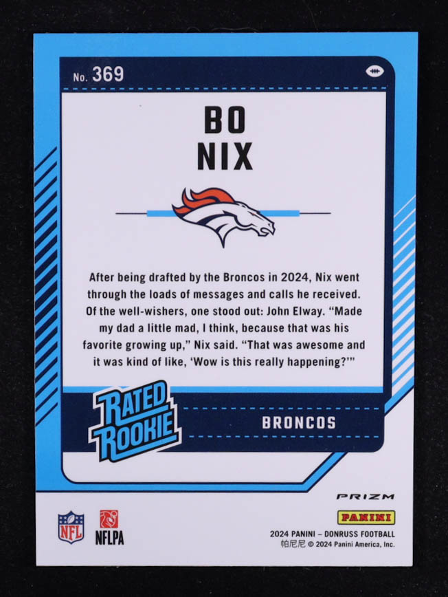 Bo Nix 2024 Donruss Optic Rated Rookies Preview Pink #369 RC