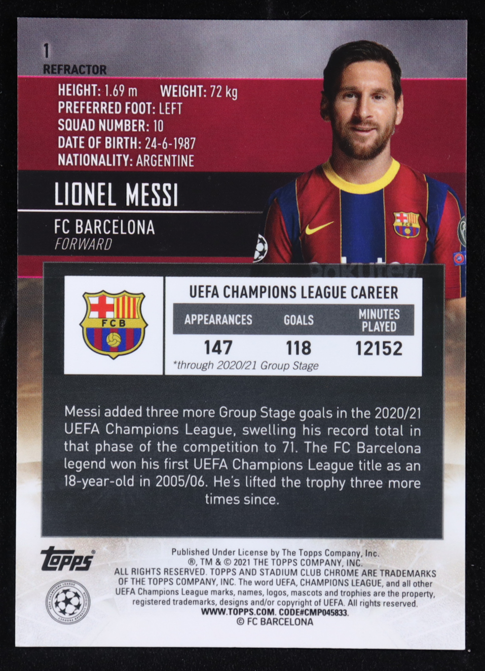 Lionel Messi 2020-21 Stadium Club Chrome UEFA Champions League Refractors #1