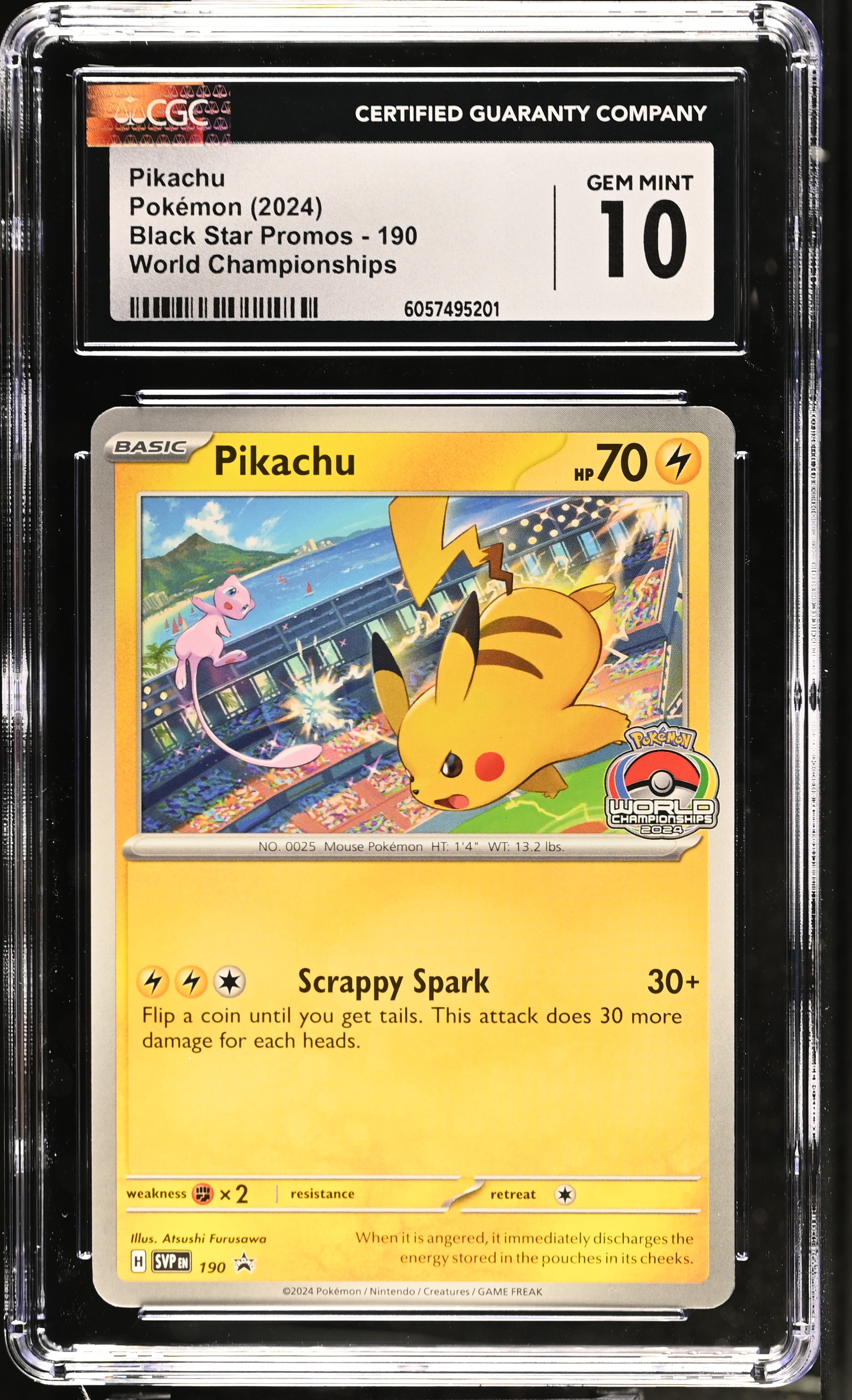 Pikachu 2024 Pokemon TCG Scarlet & Violet Black Star Promos World Championships #190 (CGC 10)