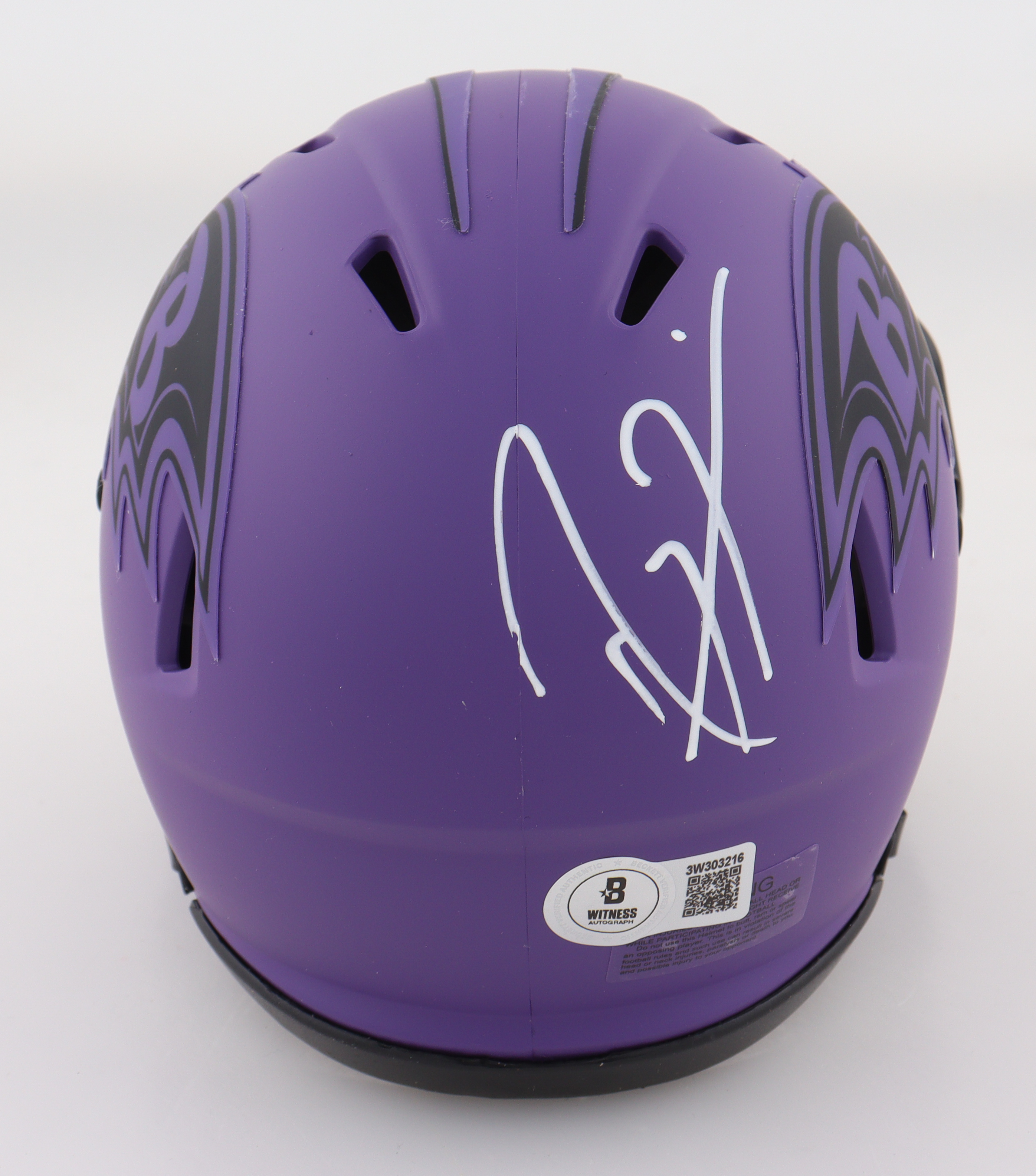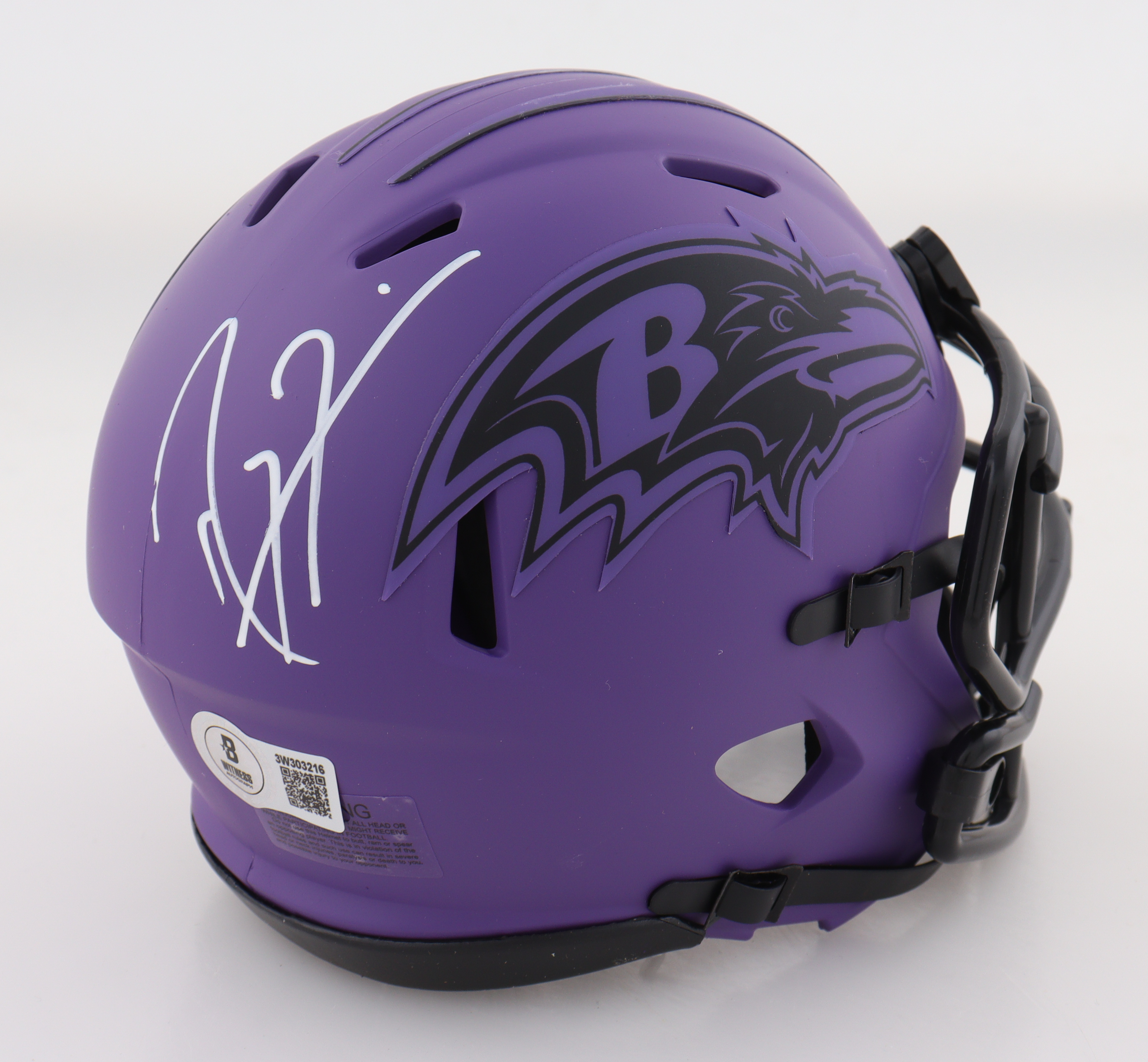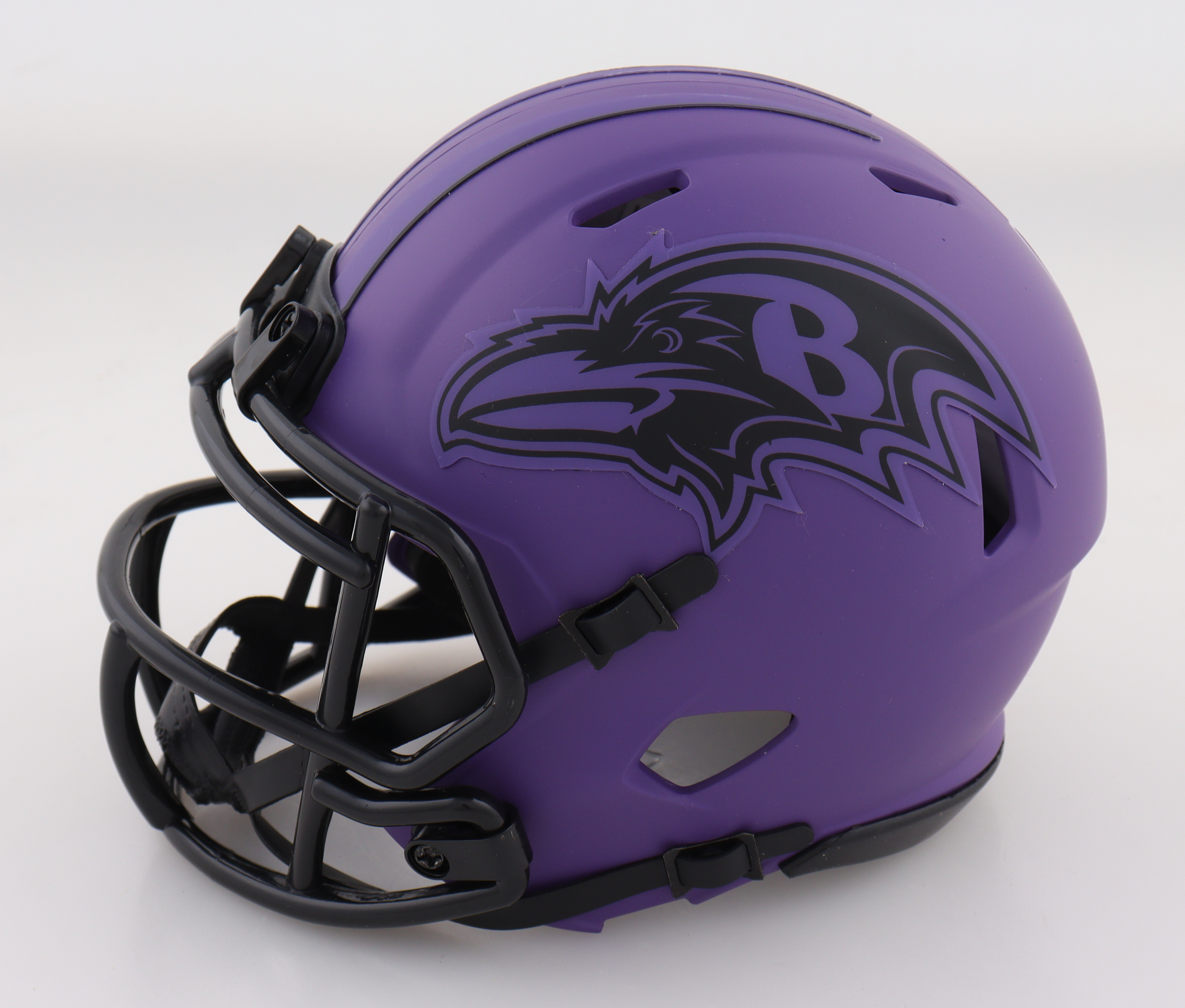 Riddell Baltimore Ravens rave alternate speed mini helmet. Hand-signed by Ray Lewis (HOF).