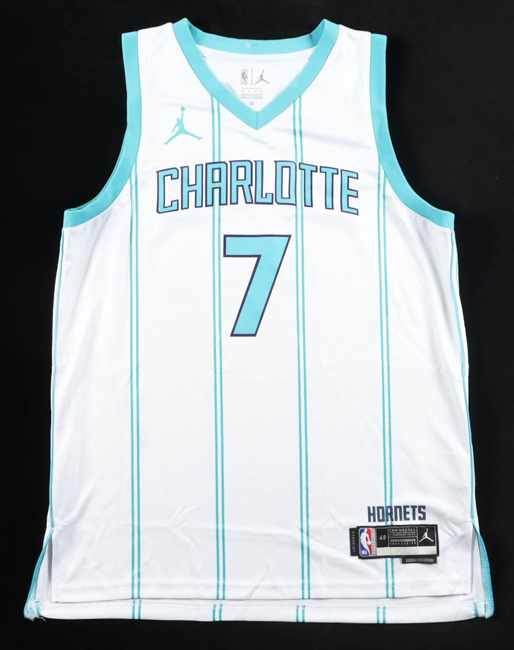 Jordan jersey with everything pressed on, size 48. Hand-signed by Kon Knueppel (Charlotte Hornets).