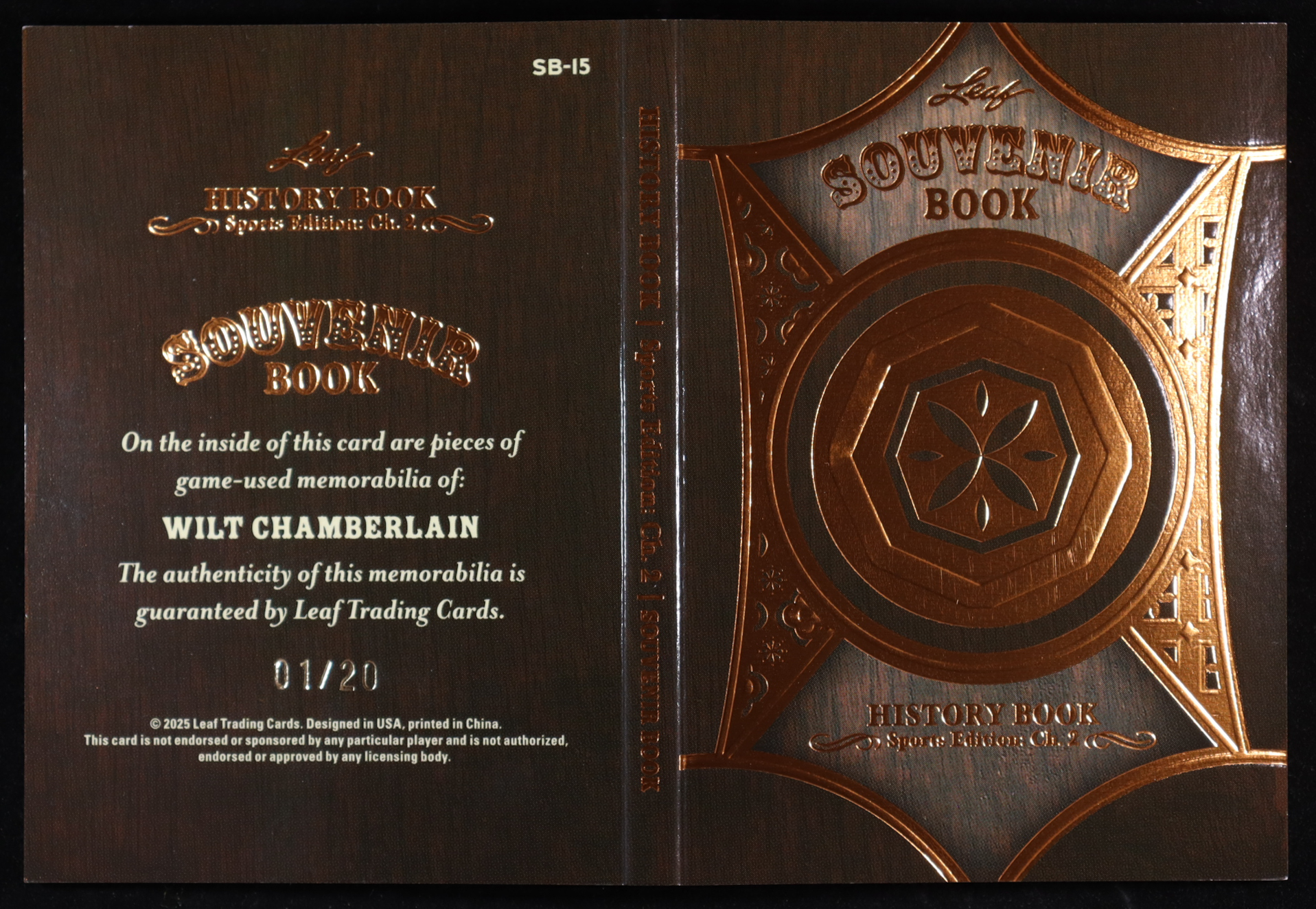Wilt Chamberlain 2025 Leaf History Book Sports Edition Chapter Two Souvenir Book Orange #SB15 #01/20