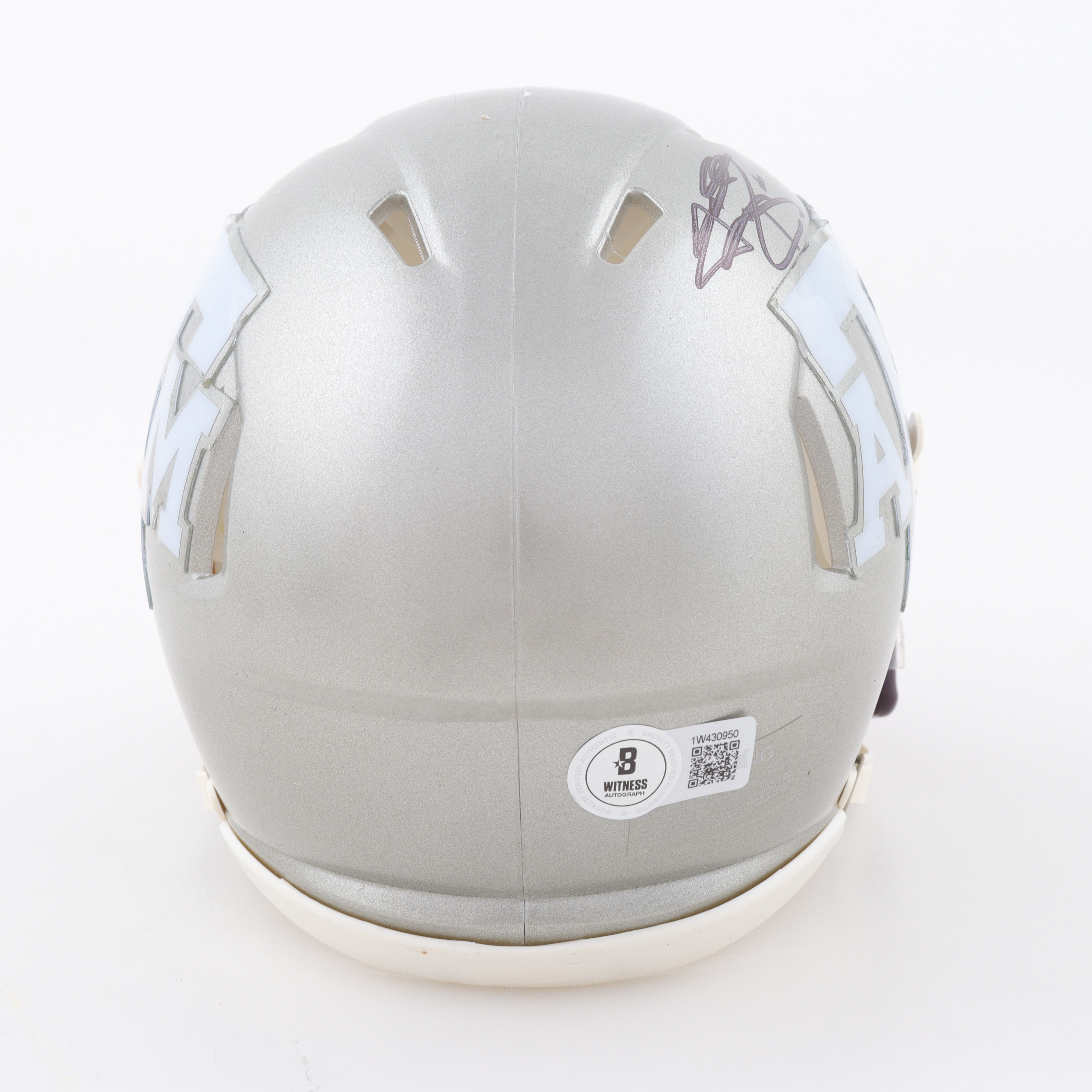 Riddell Texas A&M Aggies Flash Alternate Speed mini helmet. Hand-signed and inscribed by Johnny Manziel.