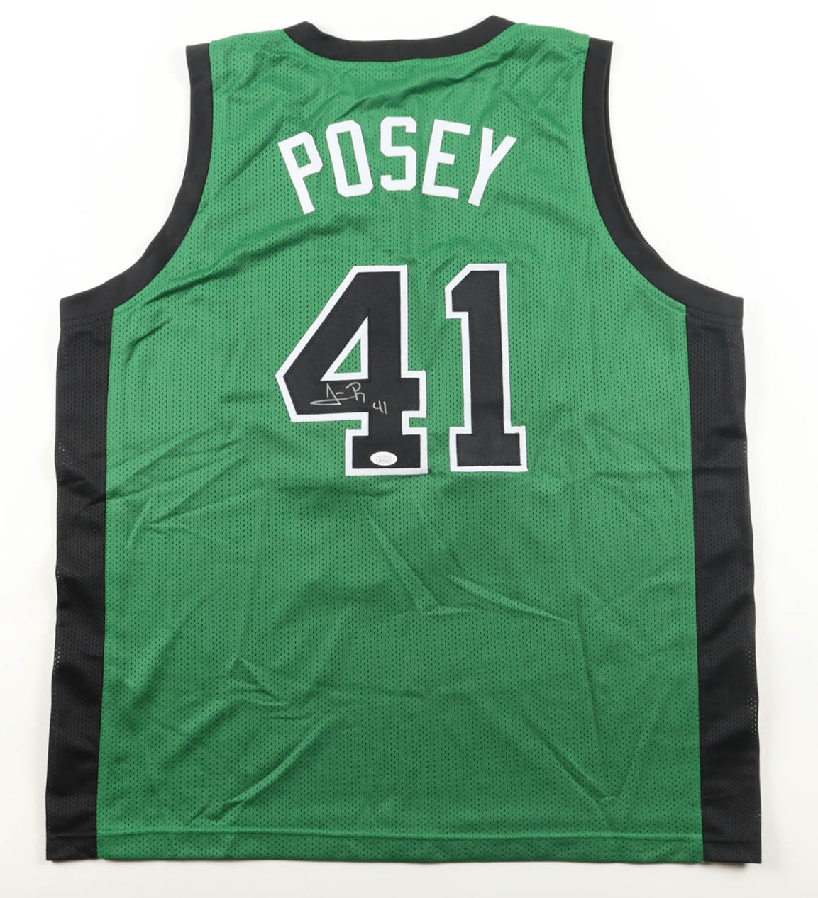Custom jersey with everything sewn on, size XL. Hand-signed by James Posey.